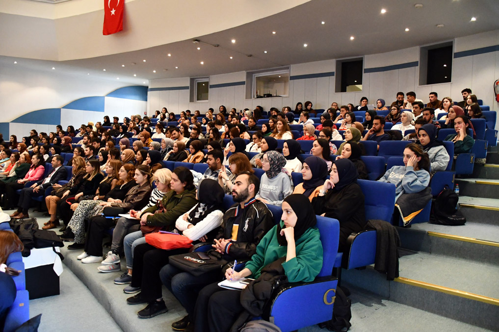 ABD’deki hemşirelik eğitimi hakkında öğrencilere ayrıntılı bilgi veren Doç. Dr. Haklı, özetle “Eğitim… Kim öğretecek, ne öğretecek, nasıl öğretecek ve kime öğretecek? ABD’de Hemşirelik’te akademisyen sayısı çok azdır. Bu meslekte akademisyenlik çok kıymetlidir. Bu nedenle akademisyen yetiştirilmesiyle ilgili ciddi ve sürdürülebilir politikalar üretilmesi gerekmektedir. Hemşirelik eğitimi çok hızlı değişiyor ve gelişiyor. ABD’de ve özellikle bizim okulda artık bilgi öğretilmiyor; doğru bilgiye nasıl erişeceksiniz ve bu bilgiyi nasıl kullanacaksınız? Biz bunu öğretiyoruz. Bilgiden ziyade bilgiyi nasıl kullandığınız daha önemli hale geliyor. Her kuşağın öğrenme şekli 10-20 yılda bir değişir. Örneğin benim jenerasyonum slaytlardan öğreniyordu; benden önceki jenerasyon sadece dinleyerek öğreniyordu. Peki sizin kuşağınız? Bunu sizler söyleyeceksiniz.” şeklinde konuştu.