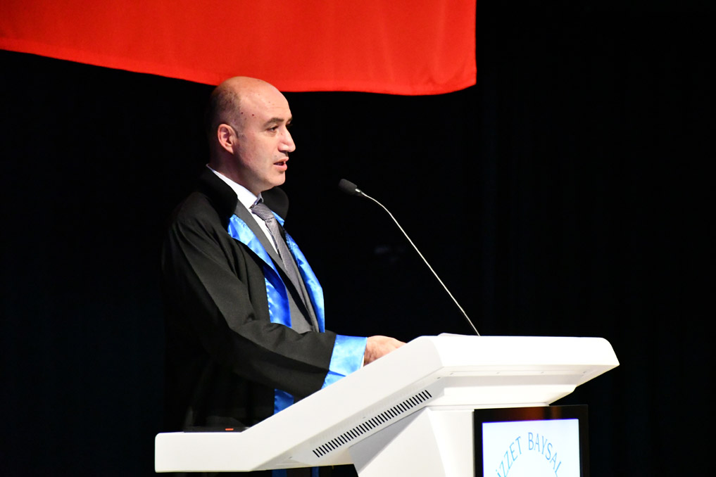 Üniversitelerin çok kültürlü yapısına vurgu yapan Rektör Alişarlı, “Türkiye’nin ve hatta dünyanın birçok yerinden öğrenciler, hem kültür hem medeniyet hem örf ve adet farklılıklarıyla üniversitemize geliyorlar. Sizler de aslında çok büyük ve birbirinden farklı bir kültür ve medeniyet ortamına adım atmış oluyorsunuz. Herkes kendi alışkanlıklarıyla geliyor. Yemek yeme alışkanlığı, müzik dinleme alışkanlığı, sosyal etkinliklere katılma alışkanlığı hatta belki selamlaşma bile keza birbirinden farklı olacak. Ama bunların hepsinin kırıldığı yer, üniversite ortamlarıdır. O yüzden bu ortamlardan azami faydalanın. Ama tabii şunu arzu etmiyoruz: Sosyal faaliyetlere katılalım ama derslerimizi aksatalım. Unutmayın ki, üniversite hayatı zamanın en geniş olduğu dilimlerden biridir. Diş Hekimliği Fakültesi, eğitimi zor bir fakültedir. Aynı zamanda çoğu zaman ayakta olacağınız için fiziki güç isteyen de bir meslektir. Eğitimi pahalıdır. Bu nedenle arzumuz, hem sizlere tecrübelerini aktaran değerli hocalarımızın yüzünü hem de sizlere yatırım yapan ailelerinizin yüzünü ak etmeniz. İşin başındayken işi sıkı tutarsanız, çok rahat ve dolu dolu bir 5 yıl geçirirsiniz. Hem sosyal faaliyetlere katılır hem de derslerinizde başarılı olursunuz. Sizlerden isteğimiz bu. Bunu bilmenizi istiyorum.” ifadelerini kullandı.