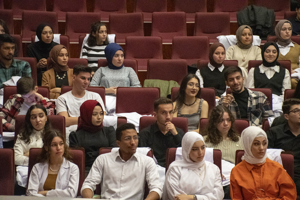 Vali Yardımcısı Abdullah Şen ise, “Beyaz önlük giyme töreninin 22 Kasım Dünya Diş Hekimliği Günü’nde yapılması çok anlamlıdır. Bu vesile ile bugün aramızda olamayan Sayın Valimizin selamlarını sizlere hassaten iletiyorum. Hekimlik çok özel, çok hassas bir meslek. Diş Hekimliği de hekimliğin özel bir türü. Diş Hekimliği cerrahinin yanı sıra aynı zamanda el becerisi de gerektiren bir meslek. Bu nedenle de önemli. Türkiye sıralamalarında da yüzde 1’lik dilime girerek geliyorsunuz üniversitemize. Gayet anlamlı ve değerli bir öğrenci kitlesine hitap etmekten dolayı memnuniyet duyuyorum. Hekimlikte en önemli mesele etiktir. Yani yaptığınız meslekte, kamu görevi ve diğer her türlü işte de bu böyle, mükerrem bir varlık olarak muhatap olduğumuz kişinin Allah’ın bir emaneti, Allah’ın bir kulu olduğunu, insanların eşit bir varlık olduğunu ömür boyu aklınızdan çıkarmamamız gerekiyor. Mesleğin henüz çok başındasınız. Bu dönemdeki heyecanınız, atacağınız dostluklar çok kıymetlidir. Bunlara sahip çıkın, arttırmaya çalışın.” ifadelerini kullandı.