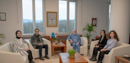 Üniversitemiz Güzel Sanatlar Fakültesi Öğr. Üyesi Doç. Dr. Özden Gezer Oğuz ve Dr. Öğr. Üyesi Emreh Sezer Üniversitemiz Rektörü Prof. Dr. Mustafa Alişarlı’yı makamında...