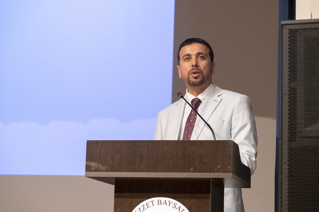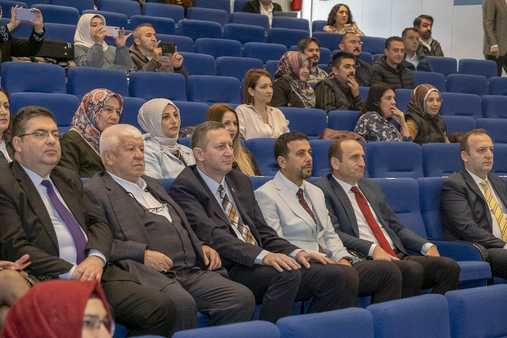 Açılış konuşması için Dr. Öğr. Üyesi Ümit Tura kürsüye geldi. Katılımcılara ve kendisinden önce sahnede keman gösterisi yapan çocuklar ile o çocukları yetiştiren öğretmenlere teşekkür ederek sözlerine başlayan Tura, Okullarda Finansal Okuryazarlık Becerilerinin Geliştirilmesi Projesi ile ilgili detaylı bilgi verdi. Projenin amacı hakkında konuşan Tura projede emeği geçenlere teşekkür ederek konuşmasını bitirdi.