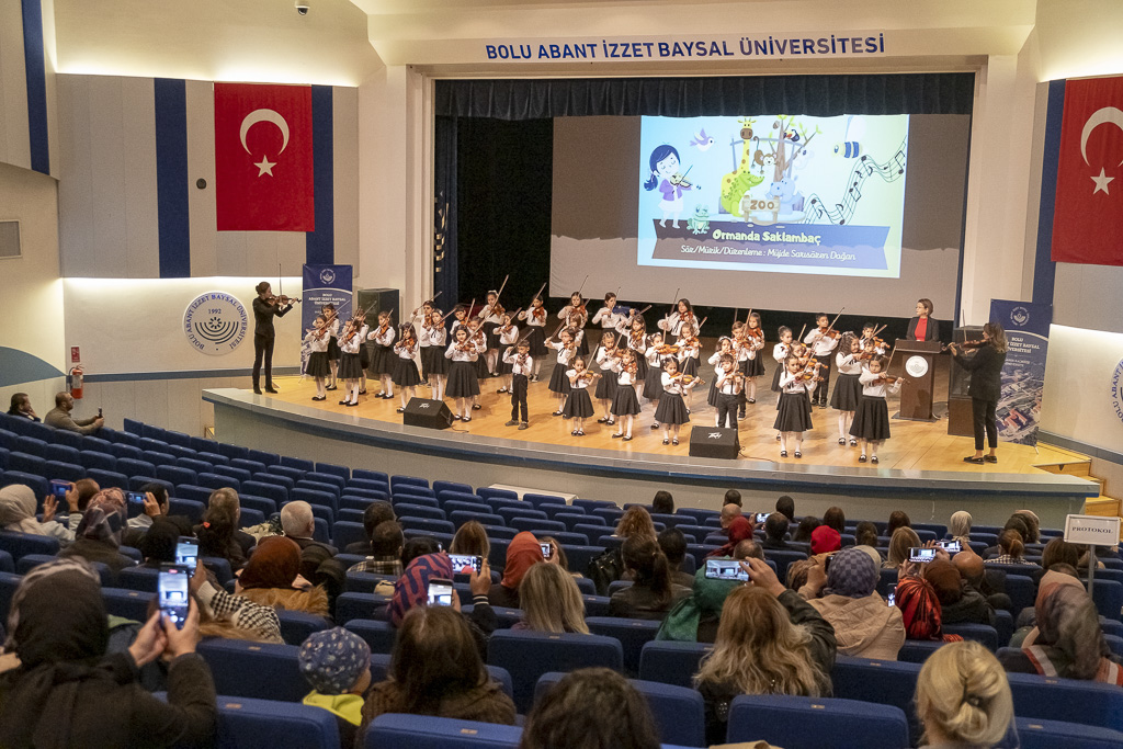 Çalıştay, saygı duruşu ve İstiklal Marşı’nın okunmasının ardından müzik öğretmeni Müjde Sarısözen Doğan yönetimindeki çocukların keman gösterisiyle başladı.