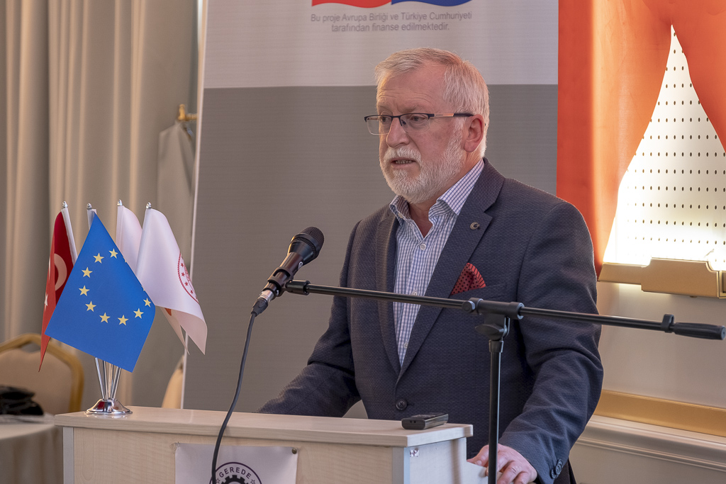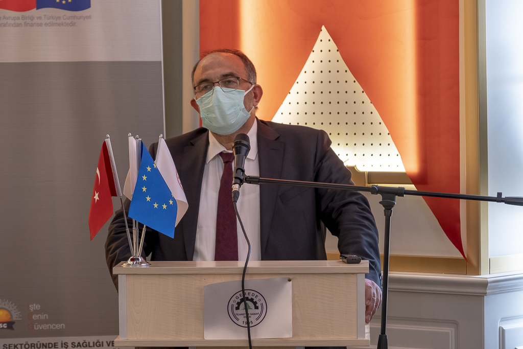 “Her yıl dünyada 2 milyon 780 bin insanı, yani Covid’den kaybettiğimizden daha fazla insanı, gerekli tedbirlerin alınmayışı sebebiyle, gerek iş kazaları ve gerek meslek hastalıkları sebebiyle kaybediyoruz. Özellikle meslek hastalıklarının yüzde 100 önlenmesi mümkün. Yine iş kazalarının da yüzde 98’inin önlenmesi mümkün. Bunun anlamı, dünya gerekli tedbirleri almış olursa, bugün bu kayıplardan bahsetmeyecektik. Türkiye Cumhuriyeti Devleti de bu noktadaki hassasiyetini artırarak, iş sağlığı ve güvenliği konusunda müstakil bir kanun çıkardı. 2012 yılında 6331 Sayılı İş Sağlığı ve Güvenliği Kanunu’yla çalışma hayatında devrim niteliğinde, AB ILO müktesebatına uygun çıkarılan kanun, buna bağlı yönetmelikler, diğer mevzuatlar ve rehberler oluşturularak, Türkiye’de iş sağlığı ve güvenliği ile ilgili ciddi bir süreç başlatıldı. İş sağlığı ve güvenliği ile ilgili hususlarda, tüm milletimizin seferber olması gerekiyor çünkü bu konu, 84 milyonu ilgilendiriyor. Elbette böyle bir konuda başarılı olmak için, devleti yönetenlerle, sivil toplum örgütleriyle, ticaret sanayi odalarımızla, üniversitelerimizle, milli eğitimimizle iş birliği içinde olmak durumundayız. Özellikle üniversitelerimizle son dönemde sıkı iş birliğimizi arttırdık. İş sağlığı ve güvenliği ile ilgili hem projeler kapsamında, hem de önlisans, lisans, yüksek lisans ve doktora programlarındaki öğrenciler ile tüm öğrencilerin bu konudaki hassasiyetlerinin artırılması yönünde çalışmalar yaptık. İşverenlerimizle yürüttüğümüz yoğun programlarda da şunu söylüyoruz: ‘İnsan hayatından önemli bir husus olmadığına göre, tüm toplantıların birinci gündem maddesi iş sağlığı ve güvenliği olmalıdır.’ Bugün 50 ve üzeri çalışanı olan kamu kurumlarımız, her ay düzenli bir şekilde İş Sağlığı ve Güvenliği Kurullarını toplamak zorunda. Yine risk planlarını, acil eylem planlarını yapmak, çalışanlarına eğitim vermek, sağlık gözetimlerini yerine getirmek, gelişen risklere karşı tedbirlerini almak durumunda. Bu tedbirler, insanların hayatını kurtardığı gibi, aynı zamanda işi ve işvereni de kurtaran bir durumdur. Bugün çok cüzi tedbirlerle halledilebilecek hususlar, yarın can ve malların kaybına, iş yerlerinin tasfiyesine vesile olabilir. Ülkenin büyümesi ve kalkınması için, ailenin ve bireyin mutluluğu için, iş sağlığı ve güvenliği çalışma hayatında birinci gündem maddesi olmalıdır. İş sağlığı ve güvenliğini bir ülkede hakim kılabilmek için sadece kanunların, mevzuatların, yönetmeliklerin, teftişlerin olması yetmez; o toplumda iş sağlığı ve güvenliği kültürünün ve ikliminin hakim olması lazım. Bunun için STK’lara, Kamu Kurum Kuruluşlarımıza, Üniversitelerimize, Milli Eğitimimize, işverenlerimize büyük görevler düşmektedir. Bu proje, Türkiye’de iş sağlığı ve güvenliği ortamının oluşmasına katkı sağlayacaktır. Bu proje kapsamında gerek çalışanların, gerek işverenlerin, gerek işveren vekillerinin ve tüm paydaşların, sürecin içinde eğitimlere tabi tutulması, farkındalık çalışmalarının yapılması, iyi örneklerin paylaşılması ve etkinliklerin her biri, gerek ilçemizde gerek ülkemizde konunun ele alınmasına vesile olacaktır.”