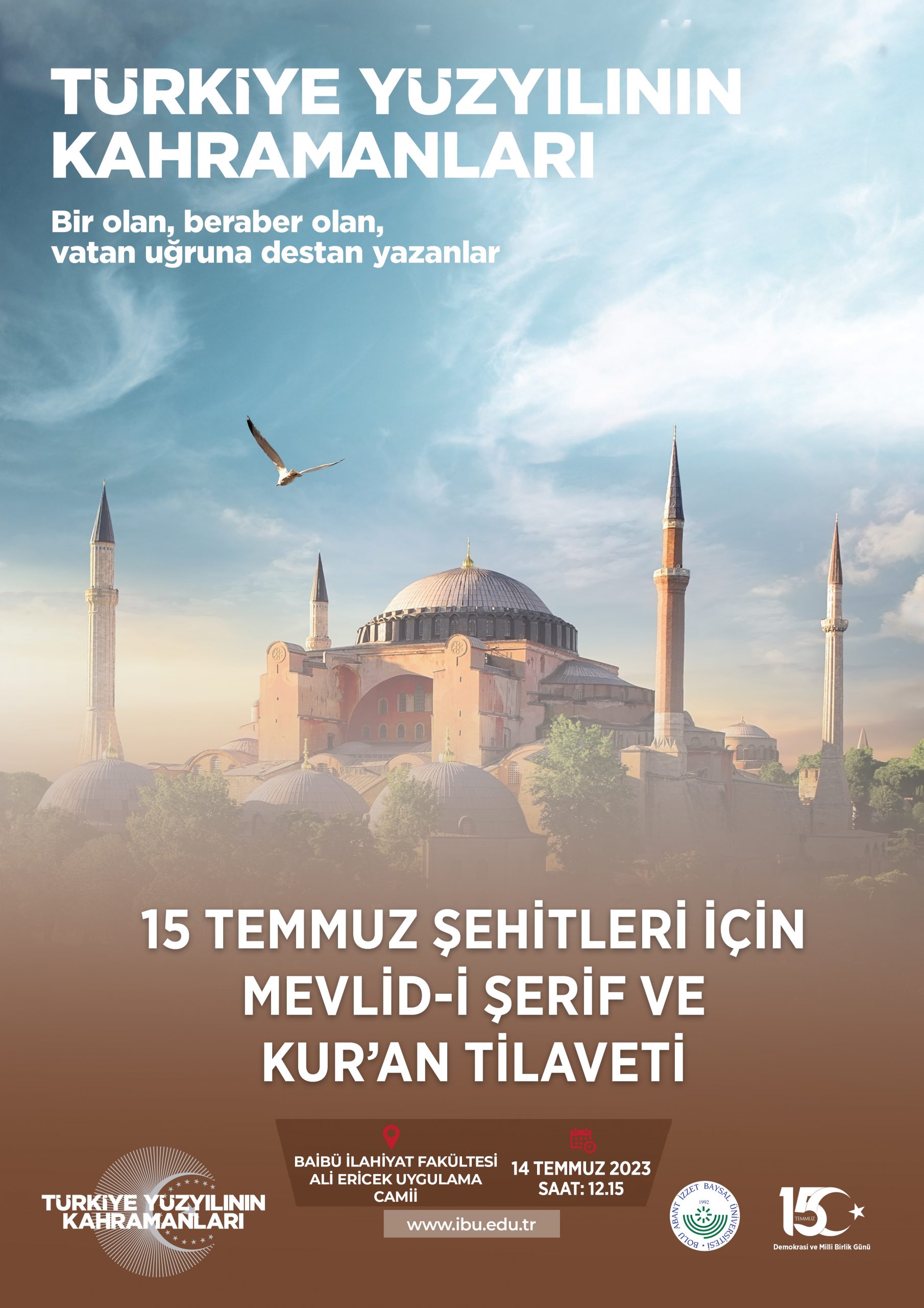 - 15 Temmuz Şehitleri için Mevlüd-i Şerif ve Kuran Tilaveti / 14 Temmuz / Saat: 12.15 / BAİBÜ İlahiyat Fakültesi Ali Ericek Uygulama Camii
