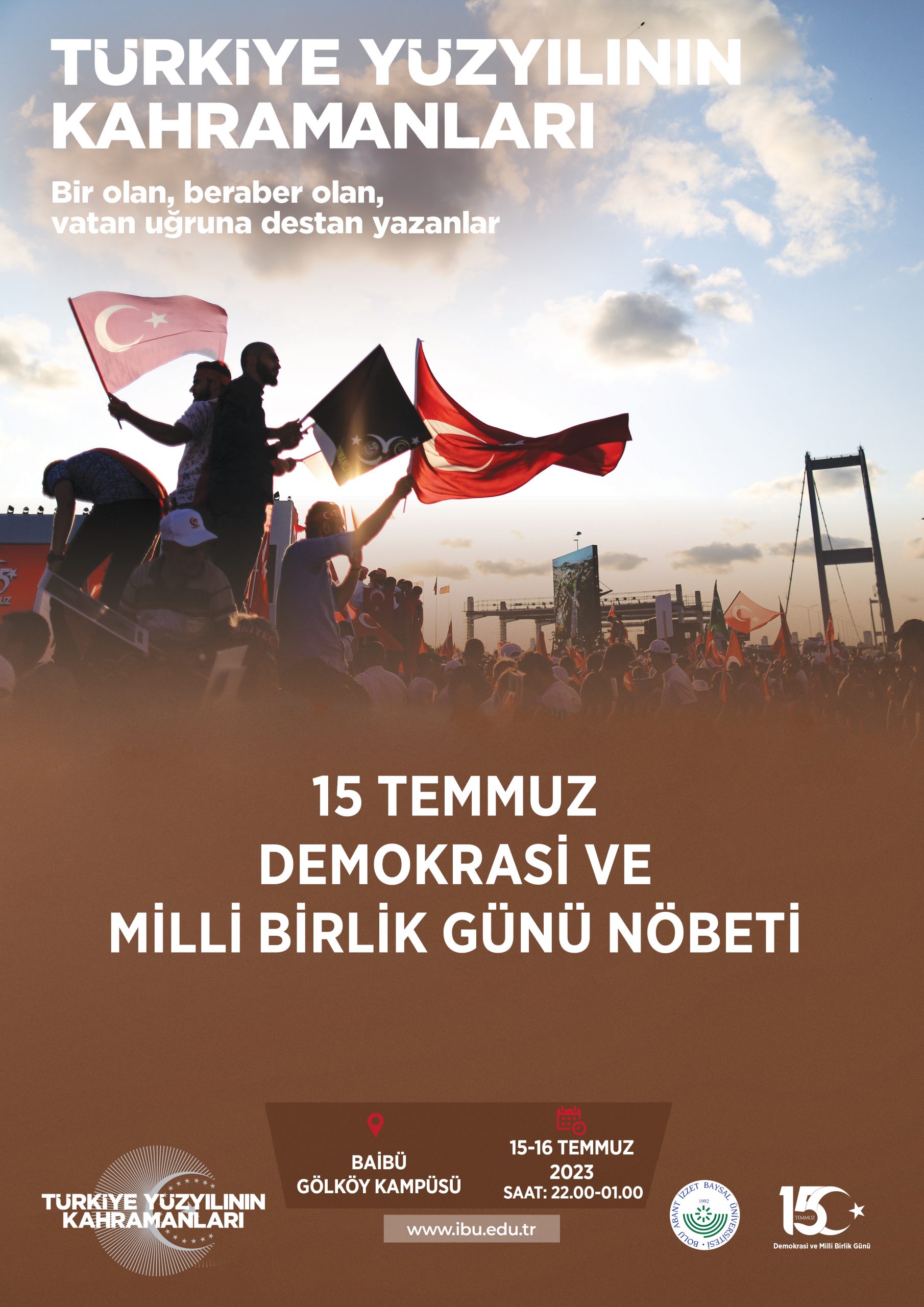 - 15 Temmuz Demokrasi ve Milli Birlik Günü Nöbeti / 15 Temmuz / Saat: 22:00-01:00 BAİBÜ Gölköy Kampüsü