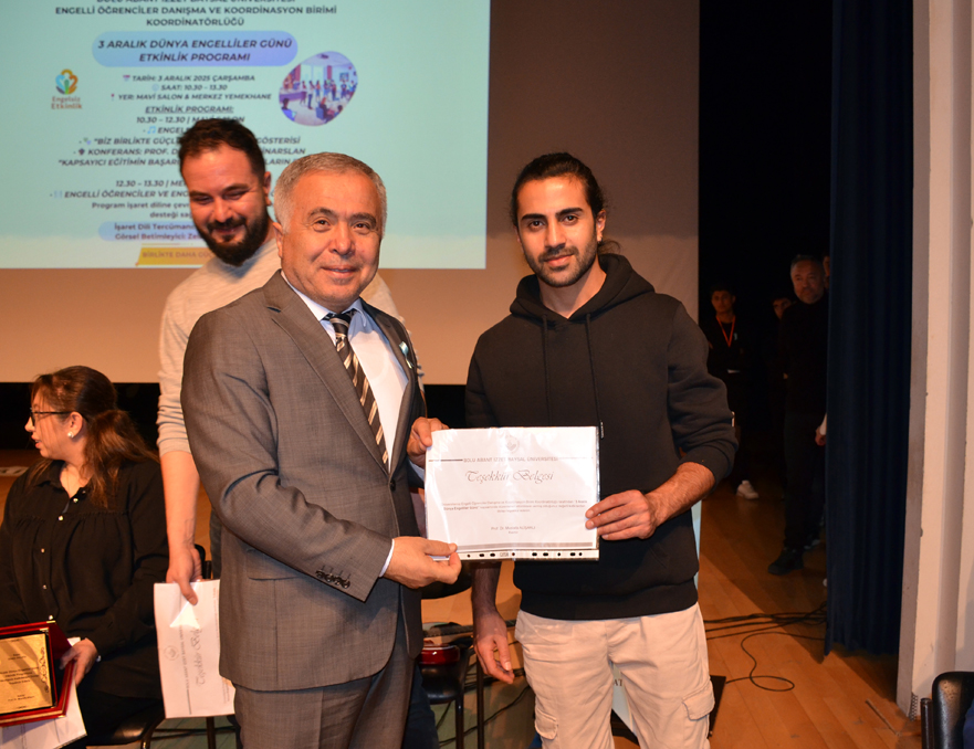 Üniversitemiz Engelli Öğrenciler Danışma ve Koordinasyon Birimi Koordinatörlüğü tarafından 3 Aralık Dünya Engelliler Günü dolayısıyla İzzet Baysal Kültür Merkezi Mavi Salonda etkinlik düzenlendi.