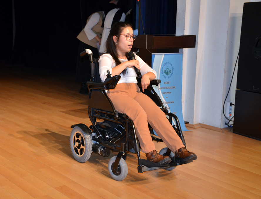 Öğrencimiz Dilek Aleyna Atay, günün önemine ilişkin yaptığı konuşmada, bugünün bütün engelleri dayanışma içinde aşabileceğimiz bir gün olması temennisinde bulundu ve kampüs içerisinde yaşadığı bütün erişilebilirlik sorunlarını ortadan kaldıran Doç. Dr. Müzeyyen Eldeniz Çetin’e ve koordinatörlük personeline teşekkür etti.