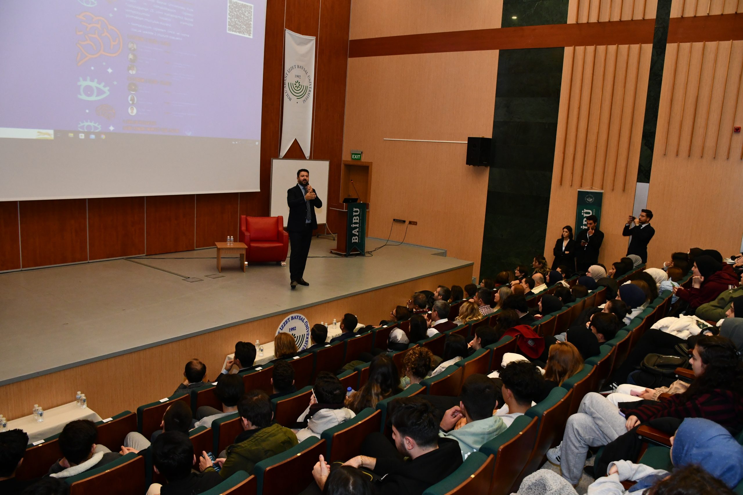Açılış konuşmalarının ardından Üniversitemiz Fizyoterapi ve Rehabilitasyon Bölümü mezunu, ilk Fizyoterapist Milletvekili Emre Çalışkan, öğrencilerle söyleşi gerçekleştirdi. Öğrencilik yılları, sınav tecrübeleri ve başarısızlıkları, Üniversitemizdeki öğrencilik yılları ve deneyimlerini paylaşan Çalışkan, Bolu Abant İzzet Baysal Üniversitesi Fizyoterapi ve Rehabilitasyon Bölümü’nde okumaktan her zaman mutluluk ve gurur duyduğunu söyledi.