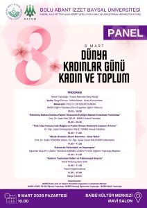 Bolu Abant İzzet Baysal Üniversitesi Kadın, Aile ve Toplum Hizmetleri Uygulama ve Araştırma Merkezi tarafından 8 Mart Dünya Emekçi Kadınlar Günü Kadın ve Toplum Paneli gerçekleştirilecektir.