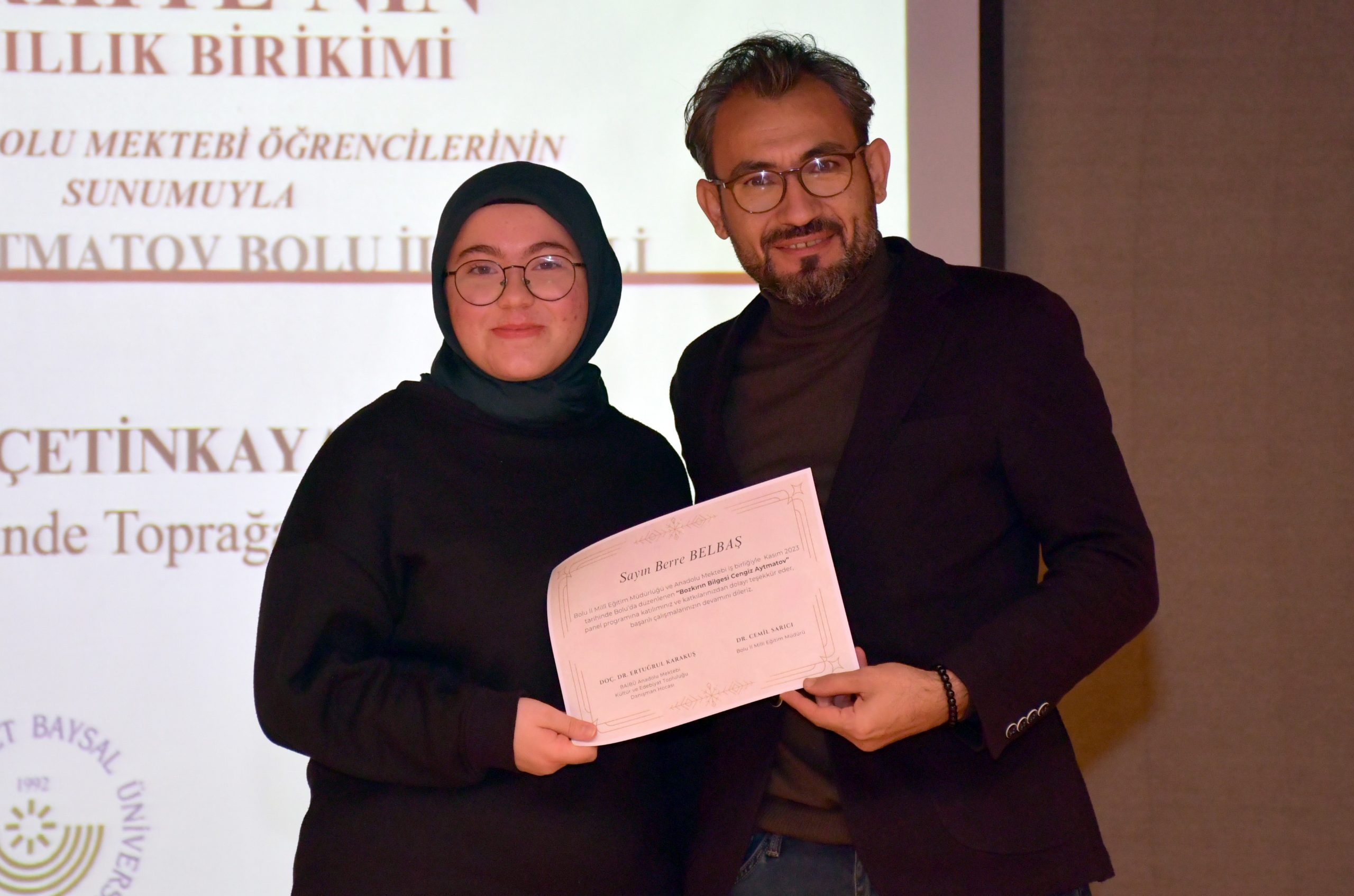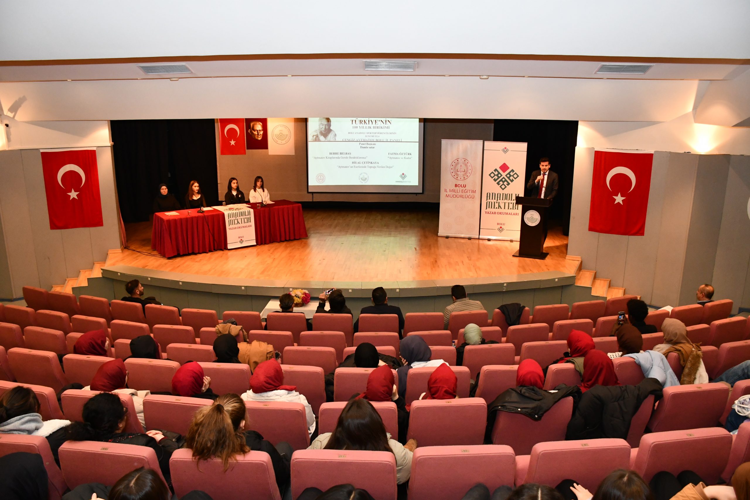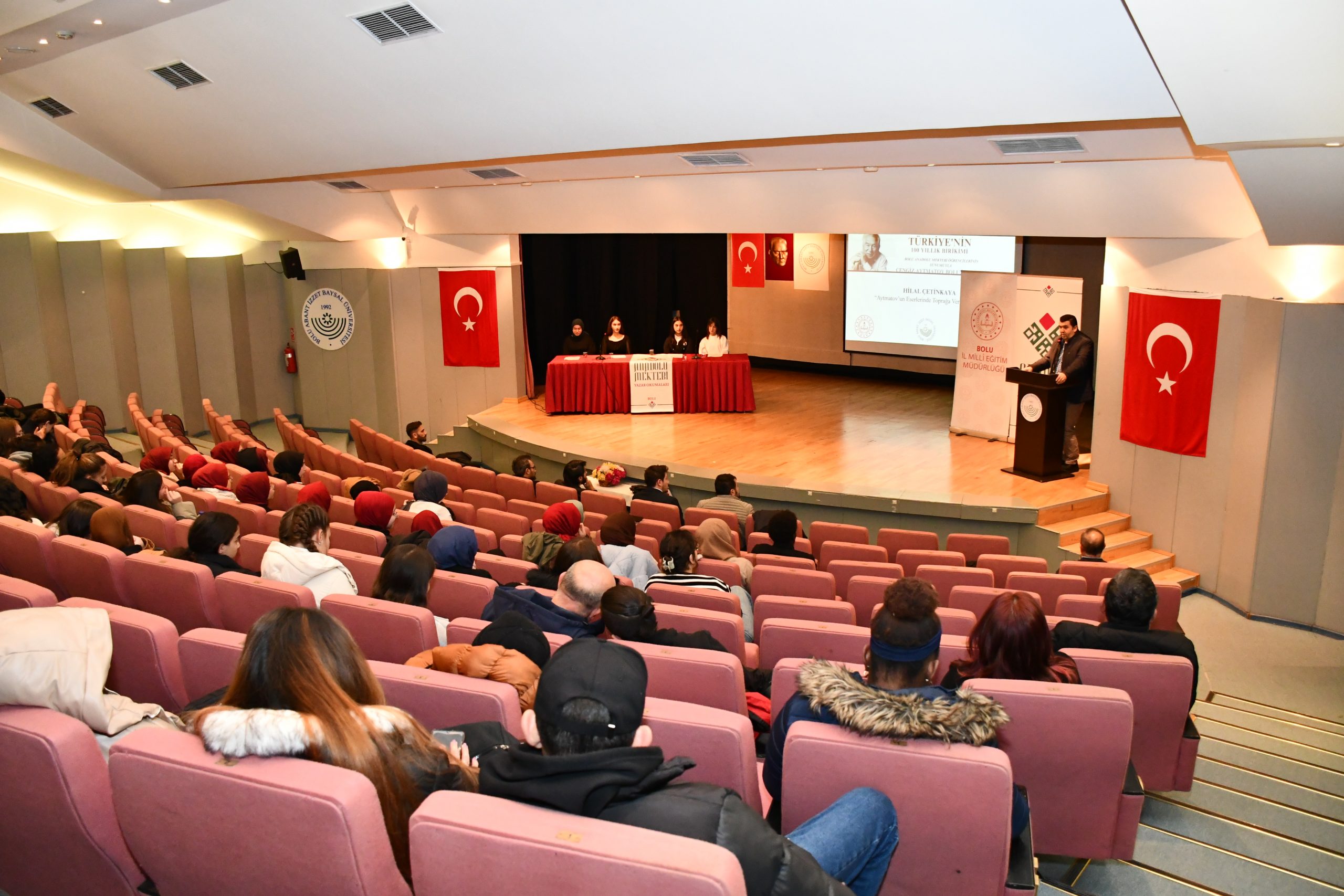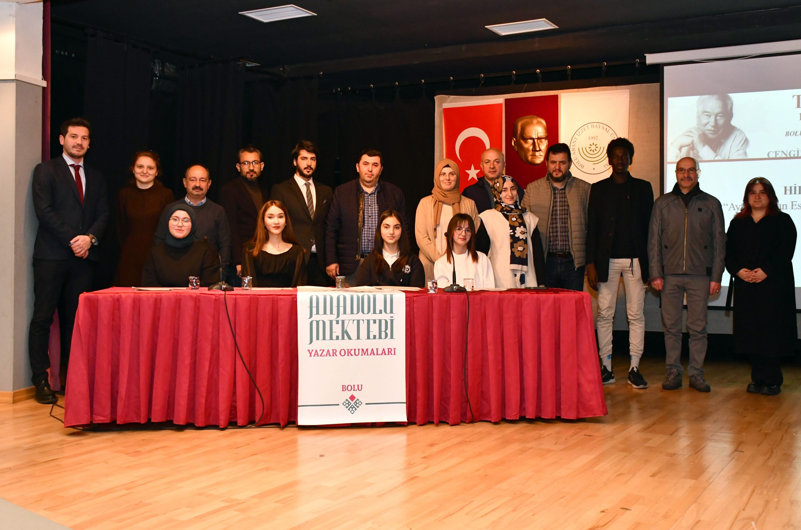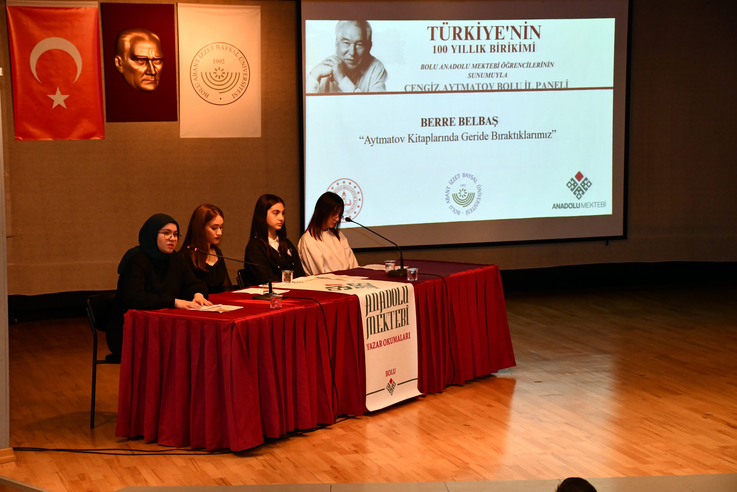 Üniversitemiz Anadolu Mektebi Kültür ve Edebiyat Topluluğu ile Bolu İl Milli Eğitim Müdürlüğü tarafından, Anadolu Mektebi öğrencilerinin yazar okumaları yaptığı etkinlik kapsamında, dünyaca ünlü yazar Cengiz Aytmatov ve eserlerinin ele alındığı panel düzenlendi.