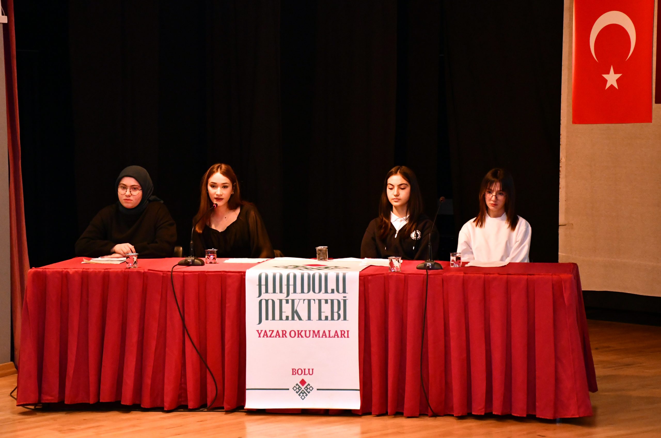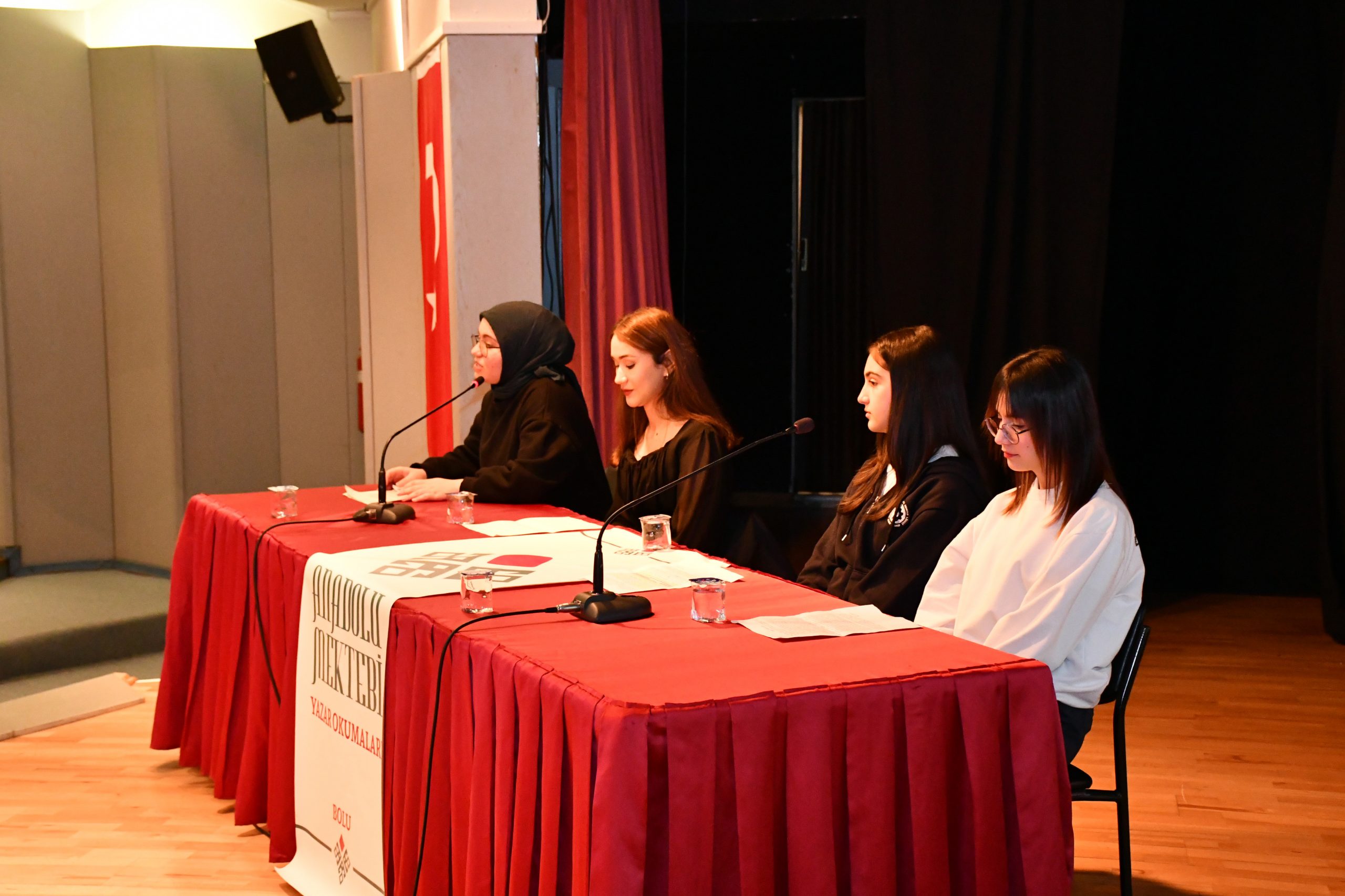 Anadolu Mektebi öğrencileri olan, Üniversitemiz Bolu Meslek Yüksekokulu İnsan Kaynakları Yönetimi 2’nci sınıf öğrencisi Damla Satar’ın moderatörlüğünde düzenlenen panelde ilk olarak Altındağ Belediyesi Kız Anadolu İmam Hatip Lisesi öğrencisi Berre Belbaş, “Aytmatov Kitaplarında Geride Bıraktıklarımız” başlıklı sunum yaptı.