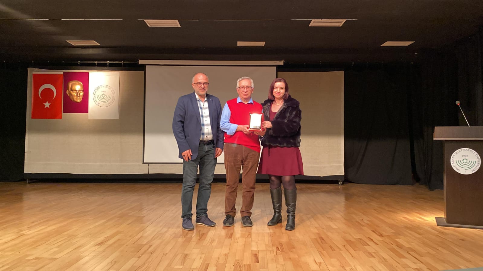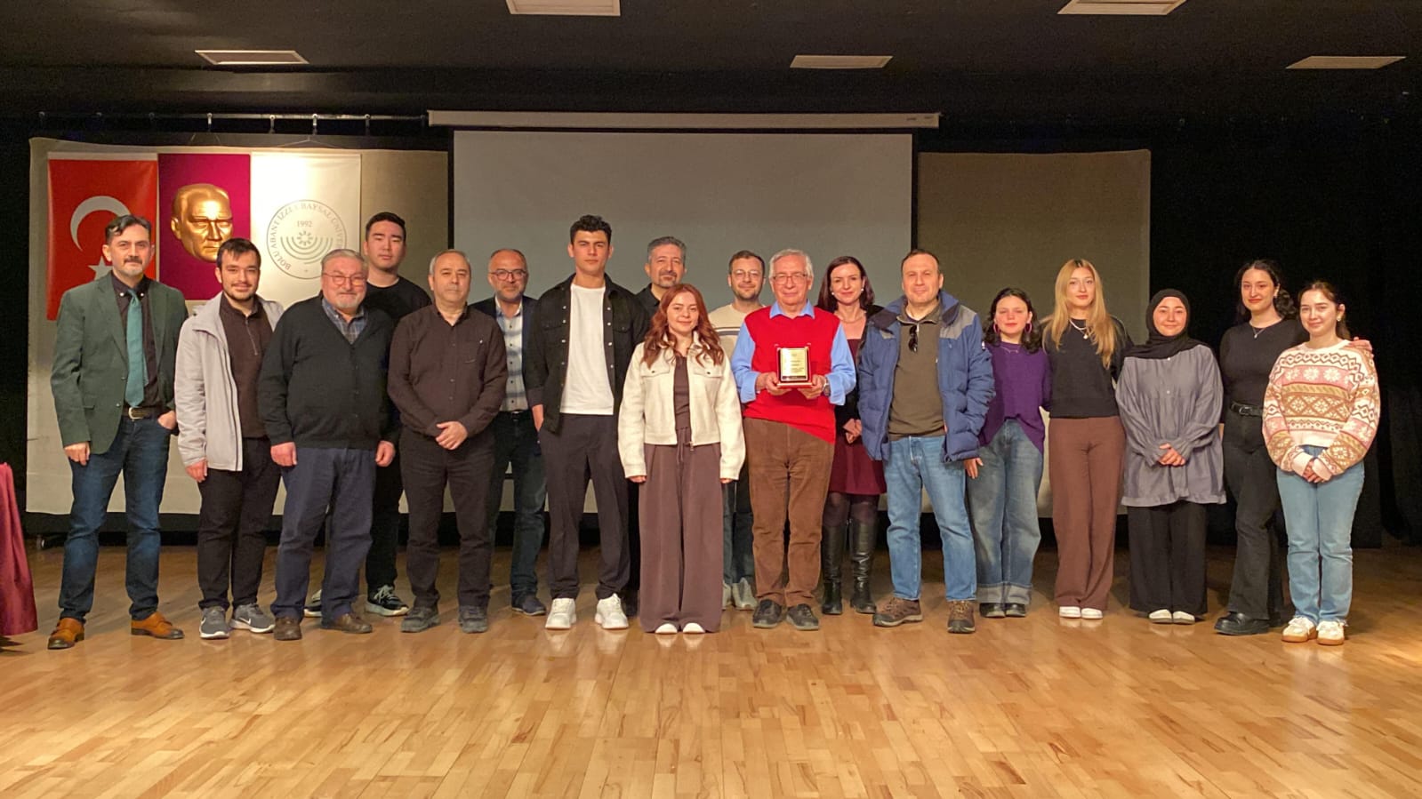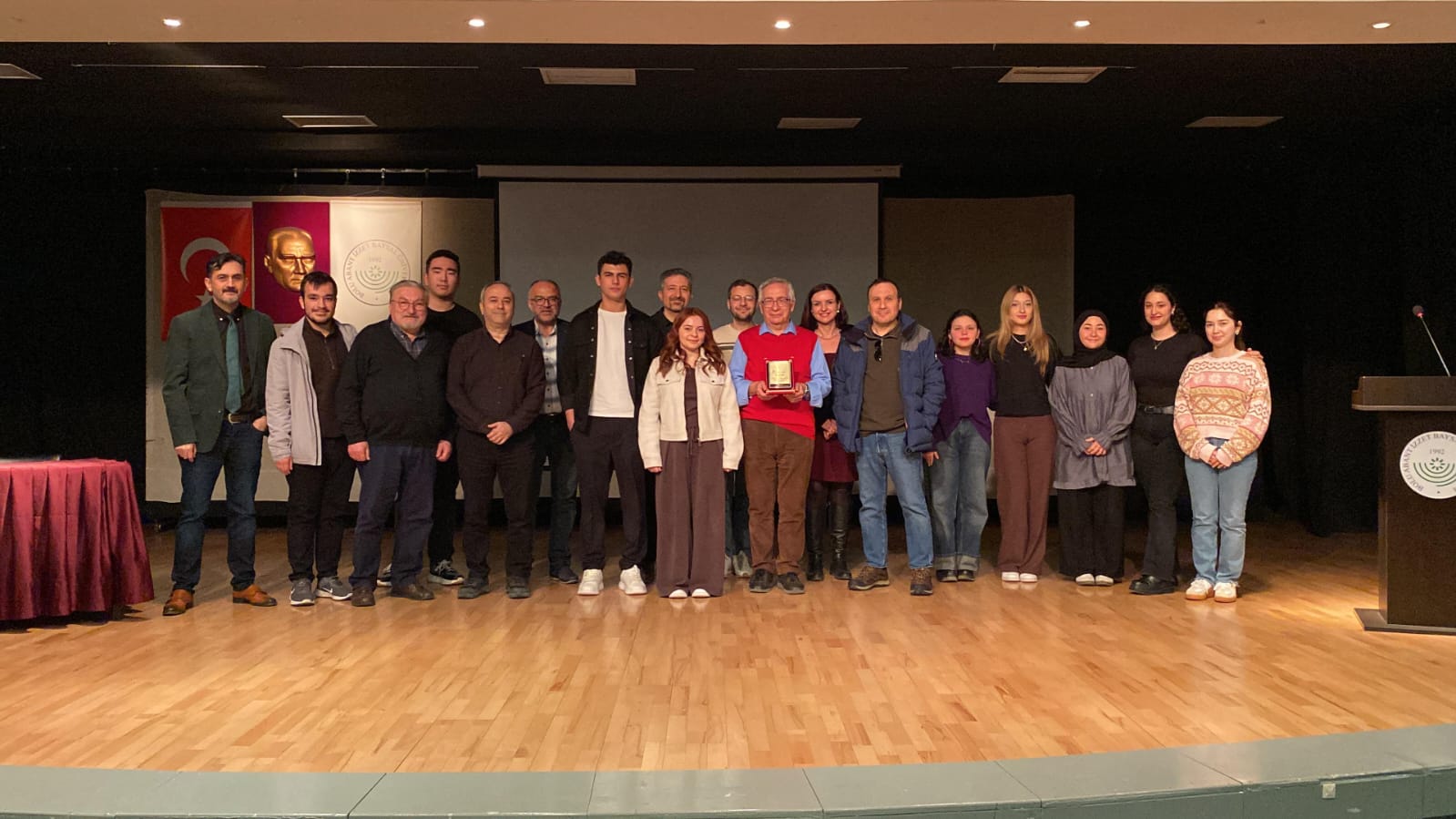 Söyleşinin sonunda Doç. Dr. Mehmet Arı’ya teşekkür plaketi takdim edildi; hatıra fotoğrafı çekiminin ardından etkinlik sona erdi.
