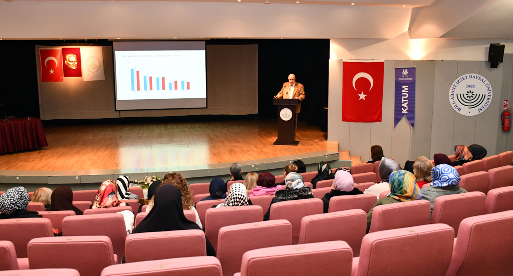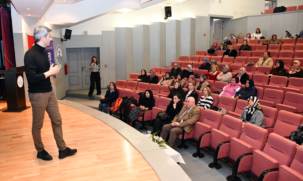 Programın ilk bölümünde Sağlık Bilimleri Fakültesi Beslenme ve Diyetetik Bölümü Öğretim Üyesi Prof. Dr. Muhittin Tayfur, Kadınlarda Obezite ve Sağlık konusunda yaptığı sunumda, yeterli ve dengeli beslenmenin insan sağlığındaki önemini anlattı.