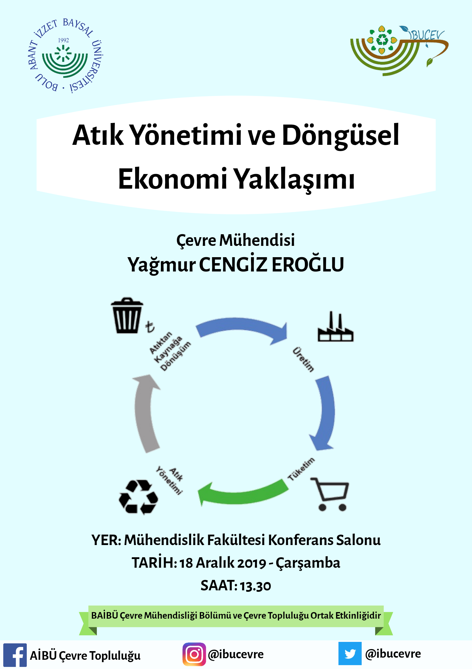 Atık Yönetimi ve Döngüsel Ekonomi Yaklaşımı / Konferans 10 Aralık 2019 Cevre Mühendisi Yağmur CENGİZ EROĞLU Yer: Mühendislik Fakültesi Konferans Salonu Tarih: 18 Aralık 2019 Çarşamba Saat: 13:30