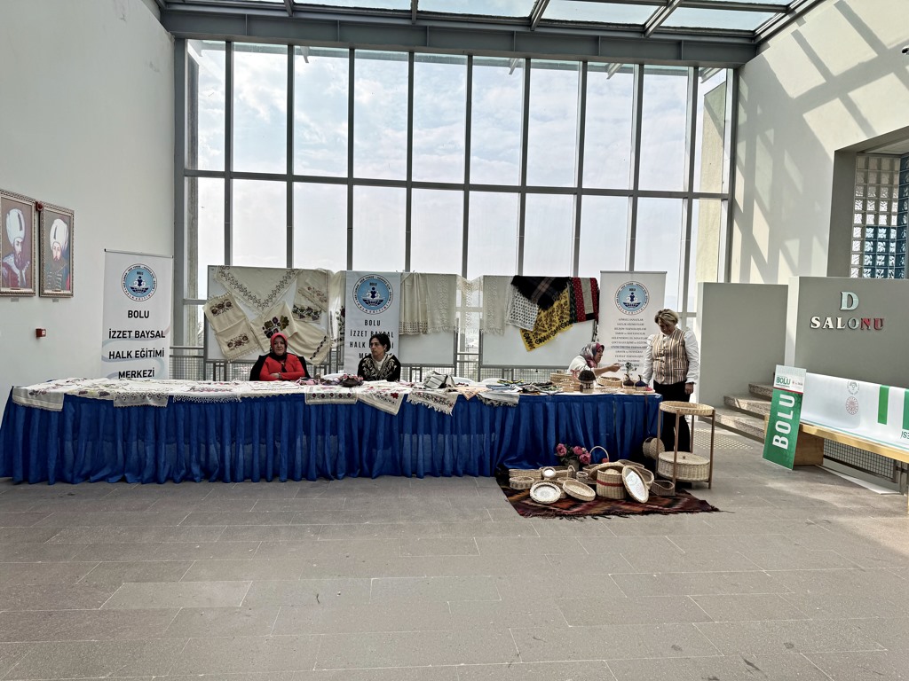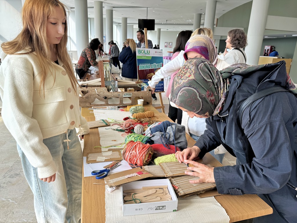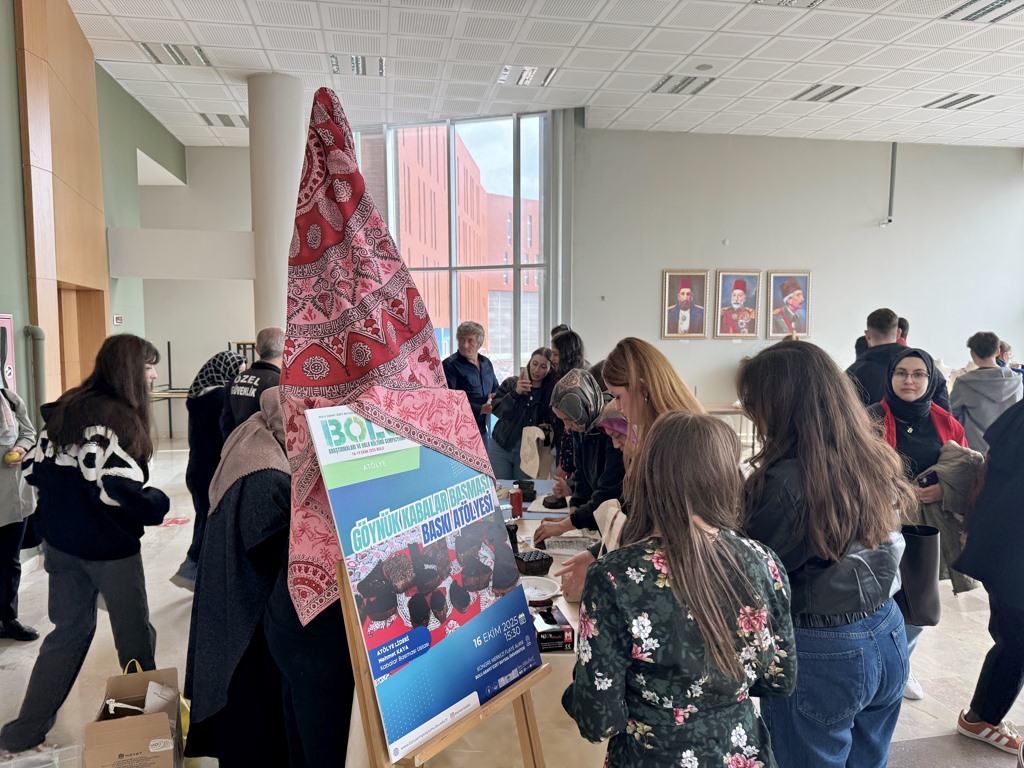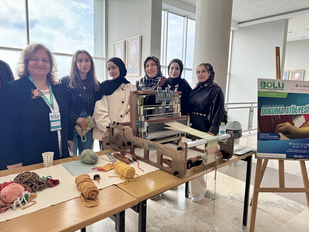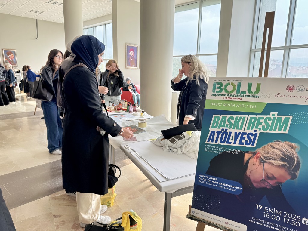 16-19 Ekim 2025 tarihleri arasında gerçekleştirilen sempozyum kapsamındaki atölye uygulamalarına ilgi büyük oldu. Atölye çalışmalarında; doğal boyalar ile baskı uygulamaları, Bolu’nun seramik alanındaki kültür belleği, atık nesnelerden baskılarla Bolu doğası ve Köroğlu betimlemeleri, Mengen poğ örtüleri desenleri sürdürülebilir ileri dönüşüm, dokuma uygulamaları, Bolu’nun bitki örtüsünden ekolojik baskı tasarımı, Mengen aşçı figürünün keçe sanatı ile yorumlanması uygulamaları, kadim bir zanaat olan Yumrukaya sepet örücülüğü, kedi batmaz yapımı, güveçte kuru fasulye ve kabak tatlısı yapımı, Bolu türküleri ile elementer deneyim, basitten zora ritim öğesiyle Bolu türküleri ve “Karanfilim Saksılarda Çanakta” türküsü ile merhum Aşık Hüseyin Aköğretmen’den derlenen “Soku Sürütmesi” halk oyunları adım analizi ve uygulaması yapıldı.