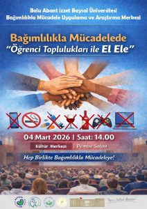 Bolu Abant İzzet Baysal Üniversitesi Bağımlılıkla Mücadele Uygulama ve Araştırma Merkezi tarafından, üniversite gençliğinde bağımlılık risklerine karşı farkındalık oluşturmak ve öğrenci topluluklarını sürece aktif paydaş haline getirmek amacıyla “Bağımlılıkla Mücadelede Öğrenci Toplulukları ile El Ele” başlıklı etkinlik düzenlenecektir.