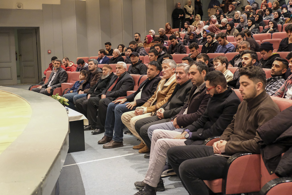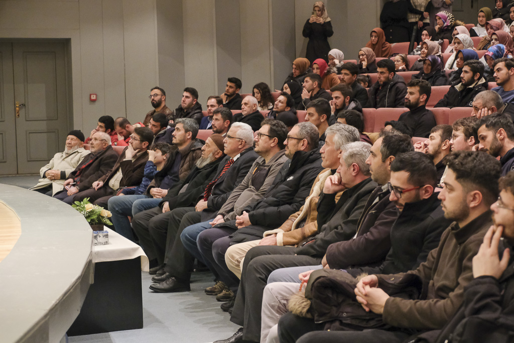 Üniversitemiz öğrencileri ve personelleri ile vatandaşların katıldığı program İlahiyat Fakültemiz Öğr. Gör. Sinan Özdemir’in Kur’an-ı Kerim tilaveti ile başladı. Söyleşisi için kürsüye gelen Prof. Dr. Şaban Karasakal öncelikle programın düzenlenmesinde desteklerinden dolayı Rektör Prof. Dr. Mustafa Alişarlı’ya ve emeklerinden dolayı Sağlık Kültür Spor Daire Başkanı ve personellerinde teşekkür ederek sözlerine başladı. Hikmet kavramı üzerinde duran Karasakal, hikmet kavramının hayatın gayesini anlamak olduğunu ifade etti. Karasakal siyer kaynaklarından aktardığı bir olayda, yeni Müslüman olan Tucid beldesinden bir gencin Peygamber Efendimizle (SAV) ilk görüşmesinde dua olarak gönlünü zenginleştirmesini istediğini Peygamberimizin de “Allah’ım bu gencin kalbine hikmeti ver gönlünü zenginleştir” diye dua ettiğini aktardı. Bir yıl sonra gencin umreye geldiğini duyan Peygamberin genç hakkında bilgi sorduğunu onun hikmet yolunda istikamette olduğunu öğrendikten sonra Peygamberimizin (SAV) hayır duasını tekrarladığını aktardı.