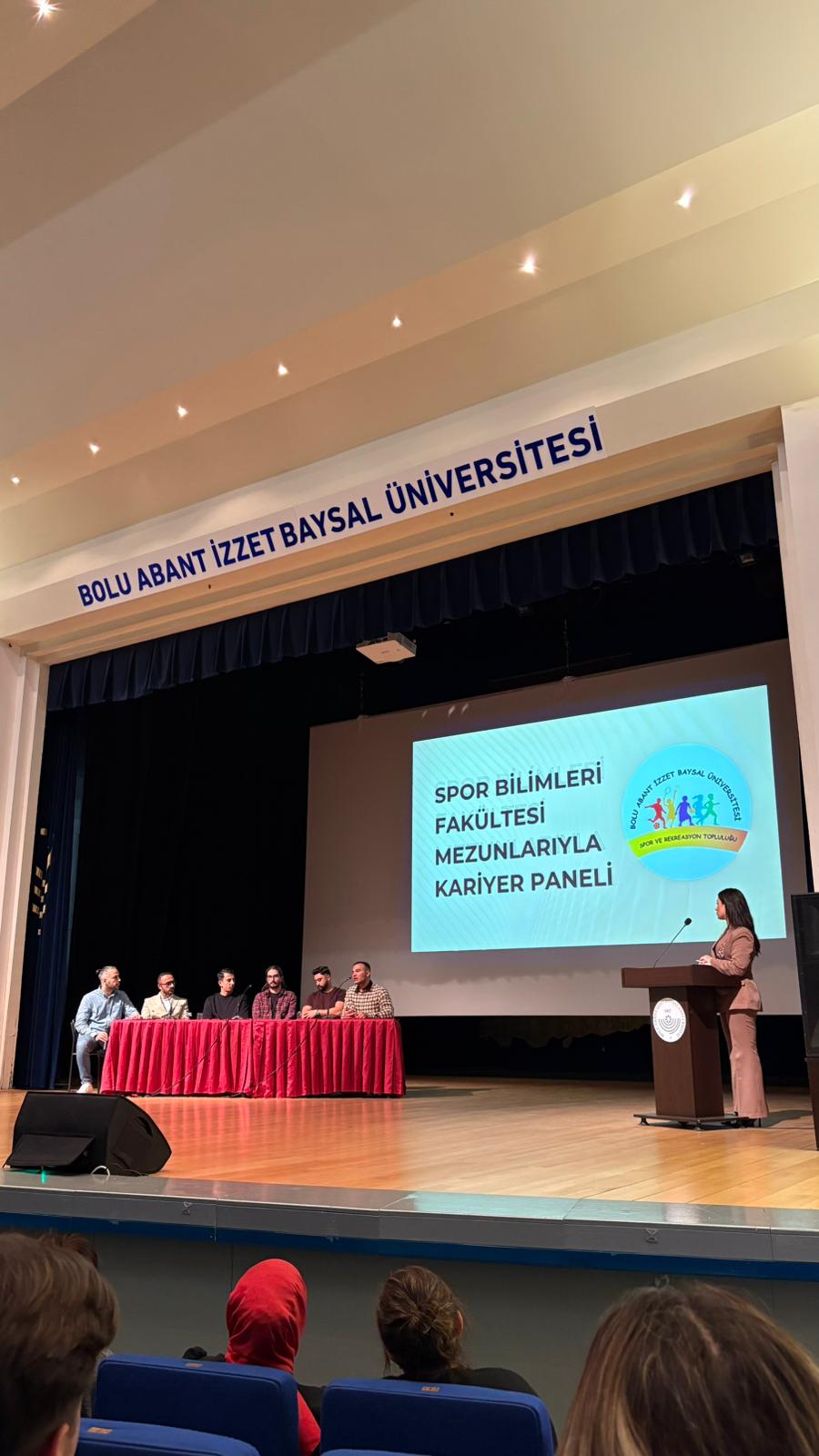 Bolu Abant İzzet Baysal Üniversitesi Spor Bilimleri Fakültesi tarafından düzenlenen “Spor Bilimleri Fakültesi Mezunlarıyla Kariyer Paneli” akademik ve idari personelimiz ile çok sayıda öğrencimizin katılımıyla gerçekleştirildi. Genç spor bilimcilere kariyer yolculuklarında rehberlik etmeyi amaçlayan panel, iki oturum halinde yapıldı. Panelin moderatörlüğünü Arş. Gör. Ahmet Özsoy üstlendi.