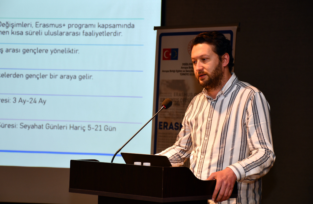 Toplantının son bölümünde Dr. Öğr. Üyesi Haydar Özaydın, KA152 Gençlik Değişimi Projeleri konulu sunumunu yaptı. Özaydın, gençlik değişimi projelerinin gençlerin sosyal, kültürel ve kişisel gelişimine sağladığı katkıları ve programın sunduğu uluslararası hareketlilik imkânlarını aktardı.