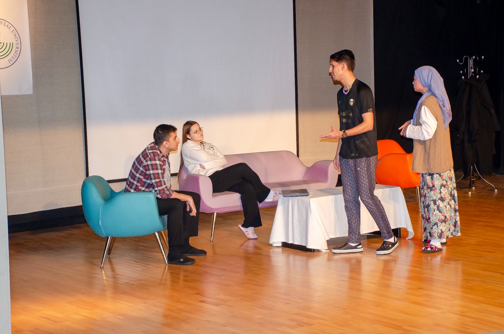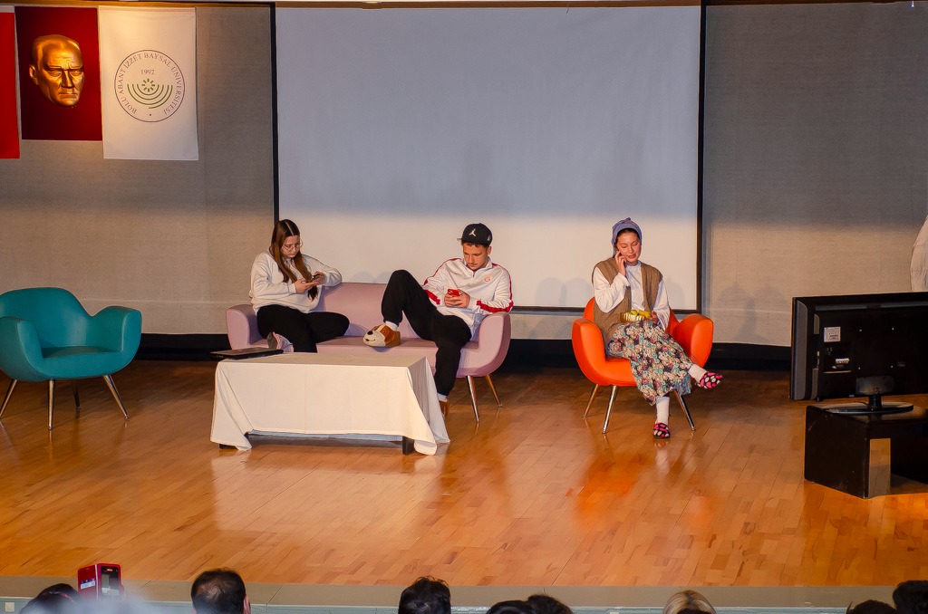Programın ikinci bölümünde sahnelenen skeç gösterisi ise etkinliğin en dikkat çeken anlarından biri oldu. Günlük yaşamda sıkça karşılaşılan ancak çoğu zaman fark edilmeyen dijital yalnızlık durumları sahneye taşınarak izleyiciler üzerinde güçlü bir etki oluşturdu.