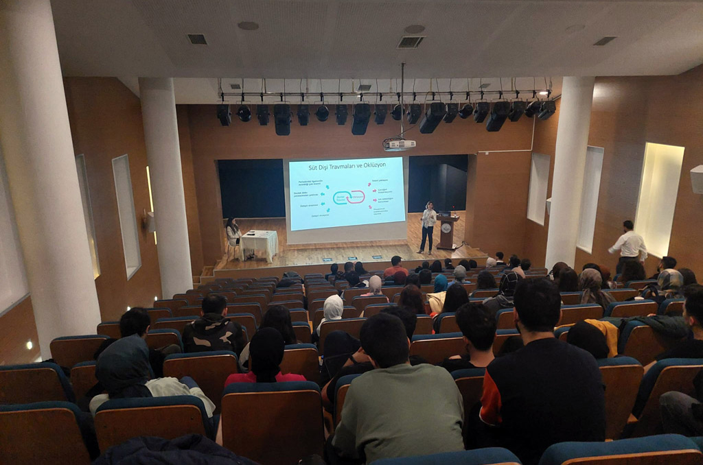 22 Kasım Dünya Diş Hekimliği Günü ve Ağız Diş Sağlığı Haftası dolayısıyla düzenlenen etkinlikte ilk olarak, Diş Hekimi Galip Kitir moderatörlüğünde mezunların kariyer deneyimlerini paylaştıkları söyleşi yapıldı. Söyleşide genç Diş Hekimleri Elif Dirican, Alperen Akgül ve Alpay Türkan mesleki deneyimlerini öğrencilerle paylaştı.