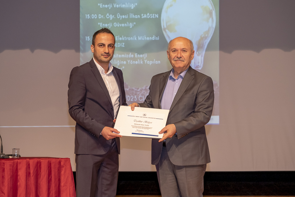 Açılış konuşmasının ardından panele geçildi. Panel Başkanı Mühendislik Fakültesi Dekanı Prof. Dr. Ömer Özyurt, “Enerji Verimliliği” konusunda sunum yaptı. Enerji verimliliğinin ne olduğunu anlatan Özyurt, “Günlük yaşantımızın her aşamasında enerji kaynaklarını kullanıyoruz ve enerji verimliliği bütün alanlarda önemli bir mevzu olarak karşımıza çıkıyor. Aynı zamanda ülke ekonomisine ve çevrenin korunmasına katkı sağlıyor. Enerji tüketimini yönetmek ve enerji verimliliği önlemlerini yürürlüğe koymak, ekonomik açıdan tasarruf sağlar. Binalarımızı daha konforlu, sağlıklı ve güvenli hale getirir.” dedi.