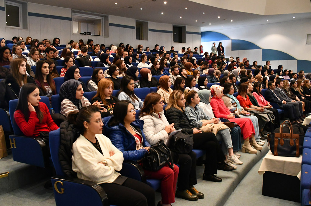 ABD’deki hemşirelik eğitimi hakkında öğrencilere ayrıntılı bilgi veren Doç. Dr. Haklı, özetle “Eğitim… Kim öğretecek, ne öğretecek, nasıl öğretecek ve kime öğretecek? ABD’de Hemşirelik’te akademisyen sayısı çok azdır. Bu meslekte akademisyenlik çok kıymetlidir. Bu nedenle akademisyen yetiştirilmesiyle ilgili ciddi ve sürdürülebilir politikalar üretilmesi gerekmektedir. Hemşirelik eğitimi çok hızlı değişiyor ve gelişiyor. ABD’de ve özellikle bizim okulda artık bilgi öğretilmiyor; doğru bilgiye nasıl erişeceksiniz ve bu bilgiyi nasıl kullanacaksınız? Biz bunu öğretiyoruz. Bilgiden ziyade bilgiyi nasıl kullandığınız daha önemli hale geliyor. Her kuşağın öğrenme şekli 10-20 yılda bir değişir. Örneğin benim jenerasyonum slaytlardan öğreniyordu; benden önceki jenerasyon sadece dinleyerek öğreniyordu. Peki sizin kuşağınız? Bunu sizler söyleyeceksiniz.” şeklinde konuştu.