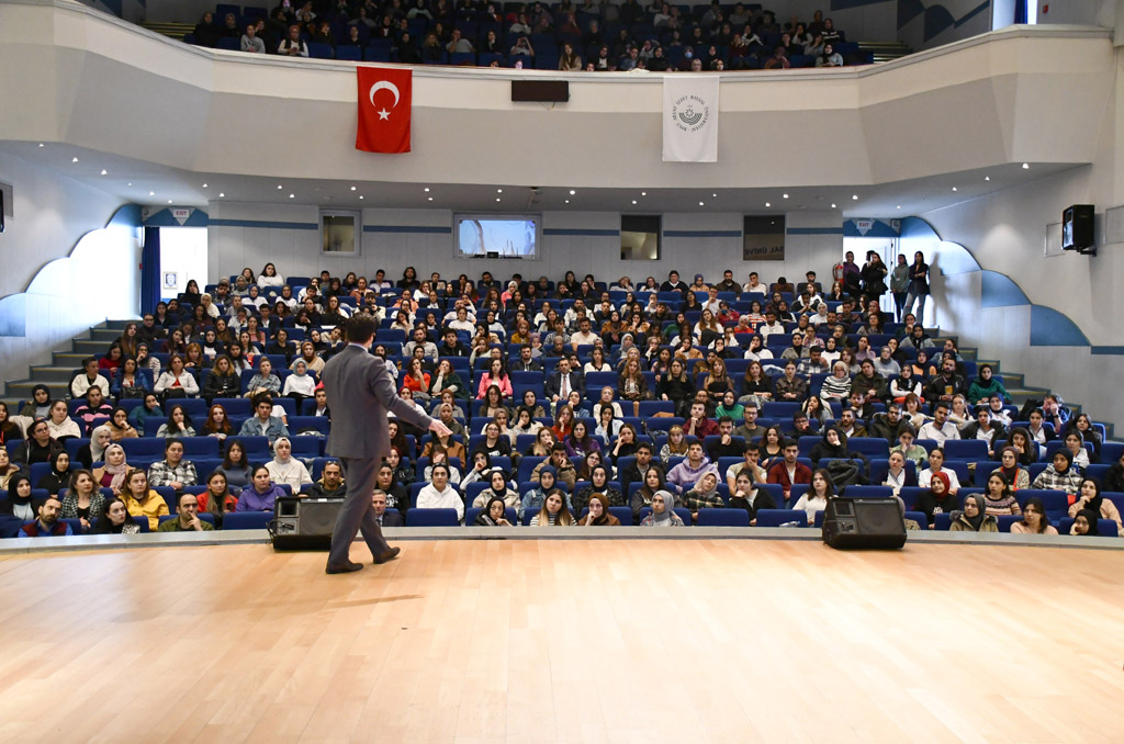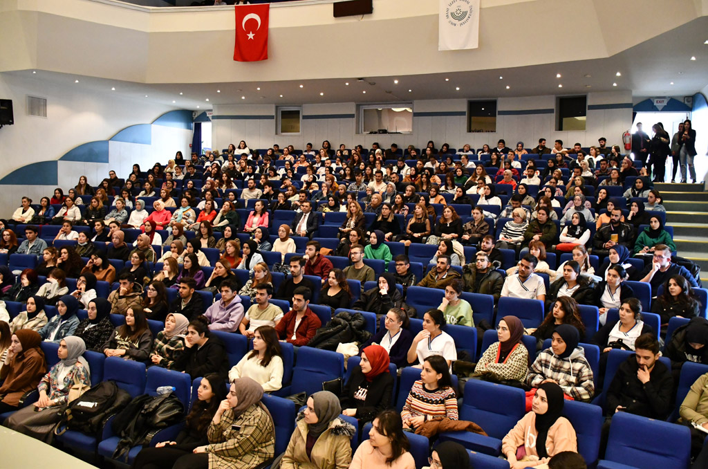 Sağlık Bilimleri Fakültesi Dekanı Prof. Dr. Nazmiye Yıldırım ve KARMER’de görev yapan Uzm. Hemşire Songül Yorgun’un moderatörlüğünü yaptığı söyleşide Doç. Dr. Orhan Haklı, hemşirelik markası, ABD’de hemşirelik eğitimi ve kariyer olanakları hakkında öğrencilere ayrıntılı bilgi verdi. Hemşireliğin çalışma şartları ve zorluklarını dile getiren Doç. Dr. Haklı, “Bu sıkıntıları neden yaşıyoruz?’ diye sorarak özetle, “Çünkü bence Hemşirelik markasını tam anlamıyla üretemediğimiz için. Eğer ülkemizde de Hemşirelik markasını üretebilirsek ve bu markanın değerini yükseltebilirsek, sizler istemeden de hak ettiğiniz şeyler sizlere zaten verilecektir.” dedi.