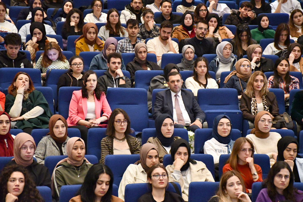 İzzet Baysal Kültür Merkezi Mavi Salondaki söyleşiye; Rektör Yardımcısı Prof. Dr. Aydın Him, Sağlık Bilimleri Fakültesi Dekanı Prof. Dr. Nazmiye Yıldırım, Dekan Yardımcıları Doç. Dr. Nevin Çıtak Bilgin ve Dr. Öğr. Üyesi Ramazan Kurul, akademisyenler, KARMER’de görev yapan akademik ve idari personel ile öğrenciler katıldı.
