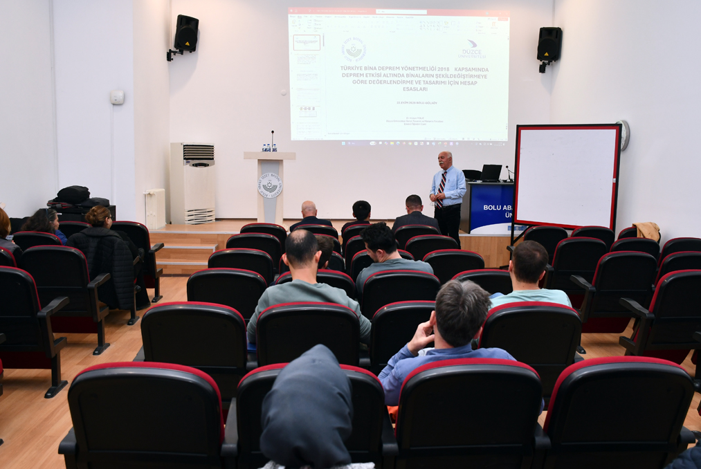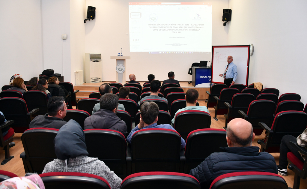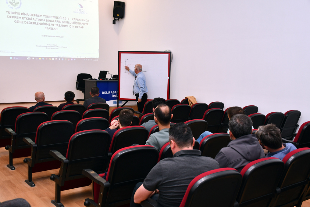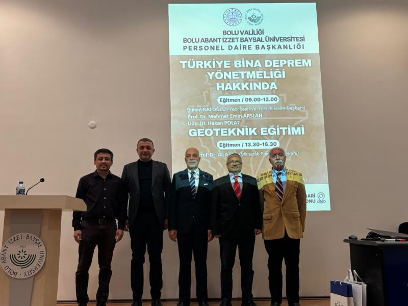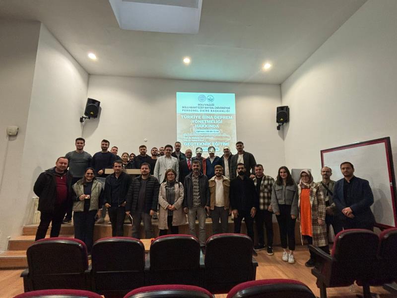 Üniversitemiz Personel Daire Başkanlığı Hizmet İçi Eğitim Şube Müdürlüğü tarafından, Bolu ilinde görev yapan İnşaat Mühendislerine yönelik “Türkiye Bina Deprem Yönetmeliği Hakkında” ve “Geoteknik Eğitimi” konulu kapsamlı hizmet içi eğitim programları düzenlendi.