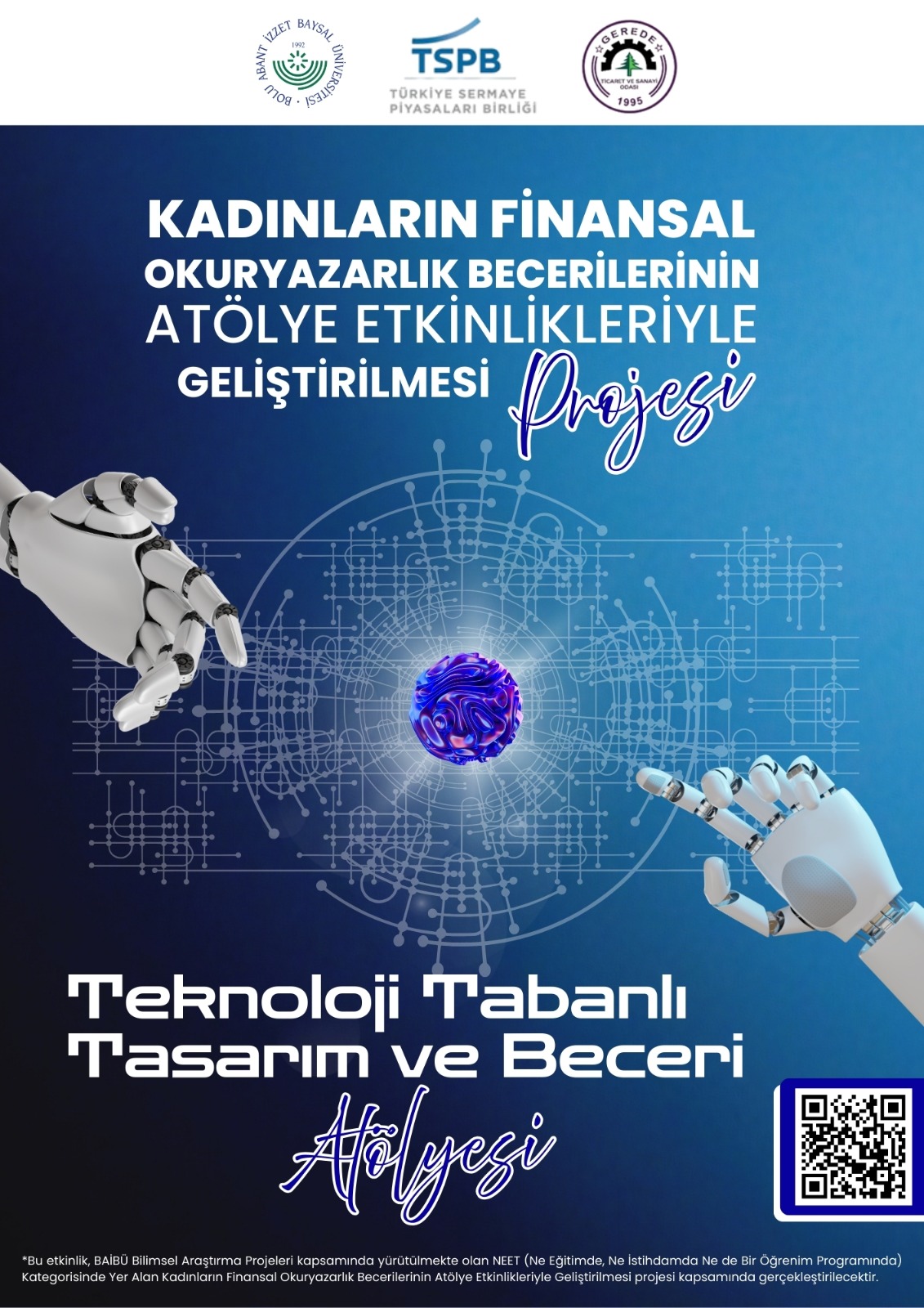 Bolu Abant İzzet Baysal Üniversitesi Bilimsel Araştırma Projeleri Koordinatörlüğü tarafından 2025-ÖNAP-11 numaralı proje kapsamında desteklenen bu etkinlik; şu an çalışmayan ve eğitimde olmayan kadınların finansal farkındalıklarını artırmayı ve yaratıcı beceriler kazandırmayı hedefliyor.