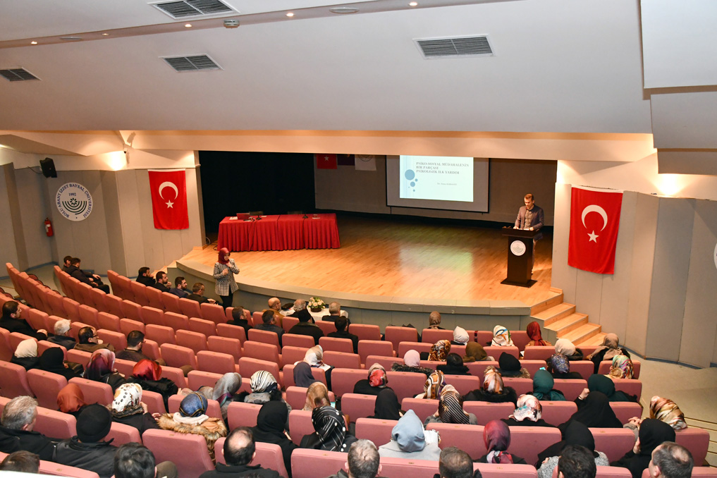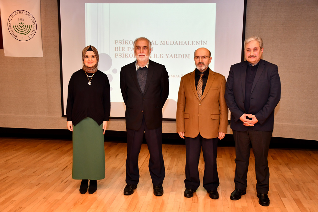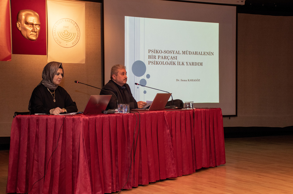 Bolu Abant İzzet Baysal Üniversitesi (BAİBÜ) ile Bolu İl Müftülüğünün birlikte organize ettiği Psiko-Sosyal Müdahalenin Bir Parçası Psikolojik İlk Yardım Konferansı Kültür Merkezi Pembe Salonda gerçekleştirildi.
