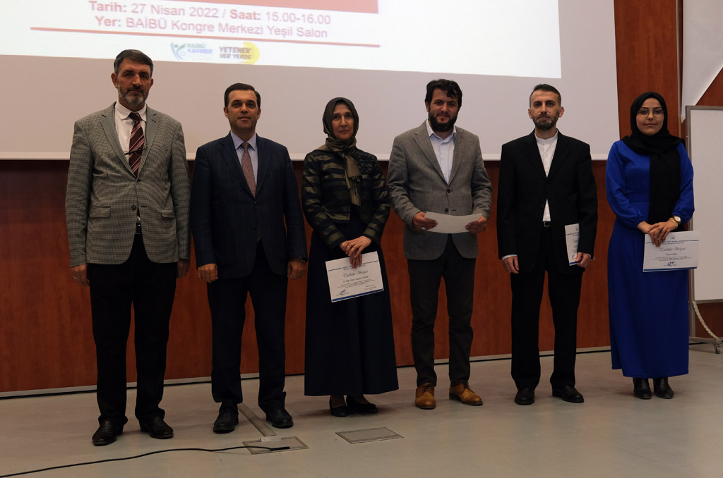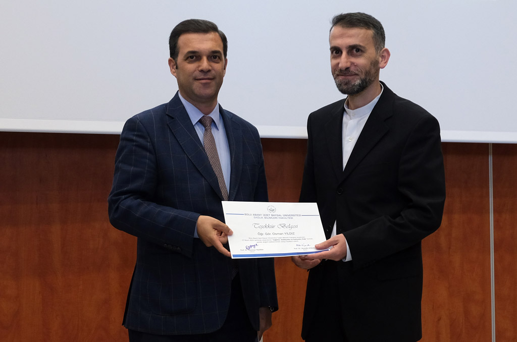Soru-cevap bölümünün ardından panelist akademisyenlere teşekkür belgeleri, Rektör Yardımcısı Prof. Dr. Aydın Him tarafından takdim edildi.