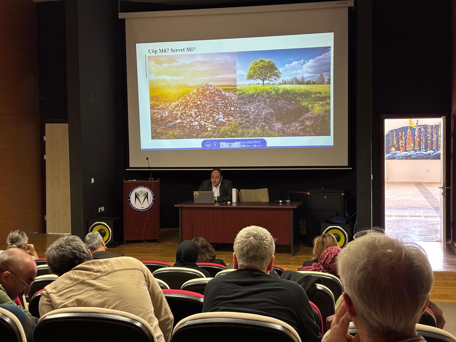 Sıfır Atık günü ve 22 Mart Su günü içerikli sürdürülebilirlik seminerlerinde konuşmacılarımız; Prof. Dr. Nusret Karakaya: Türkiye’nin Su Kaynakları ve Su Kaynakları İle İlgili Sorunları, Ziraat Yüksek Mühendisi Mehmet Durak Tüysüz : Dünyadan Türkiye’ye Sıfır Atık Yolculuğu, Çevre Mühendisi Jale Bağcı. Üniversitemizde Sıfır Atık temaları çerçevesinde sunumlarını gerçekleştirmiştir.