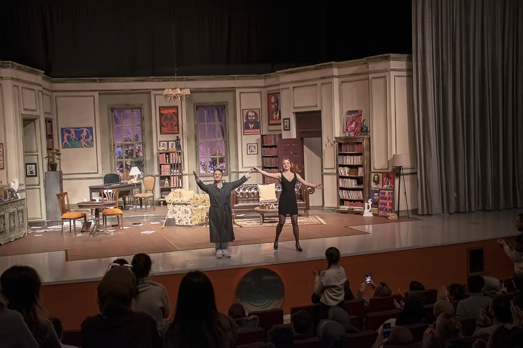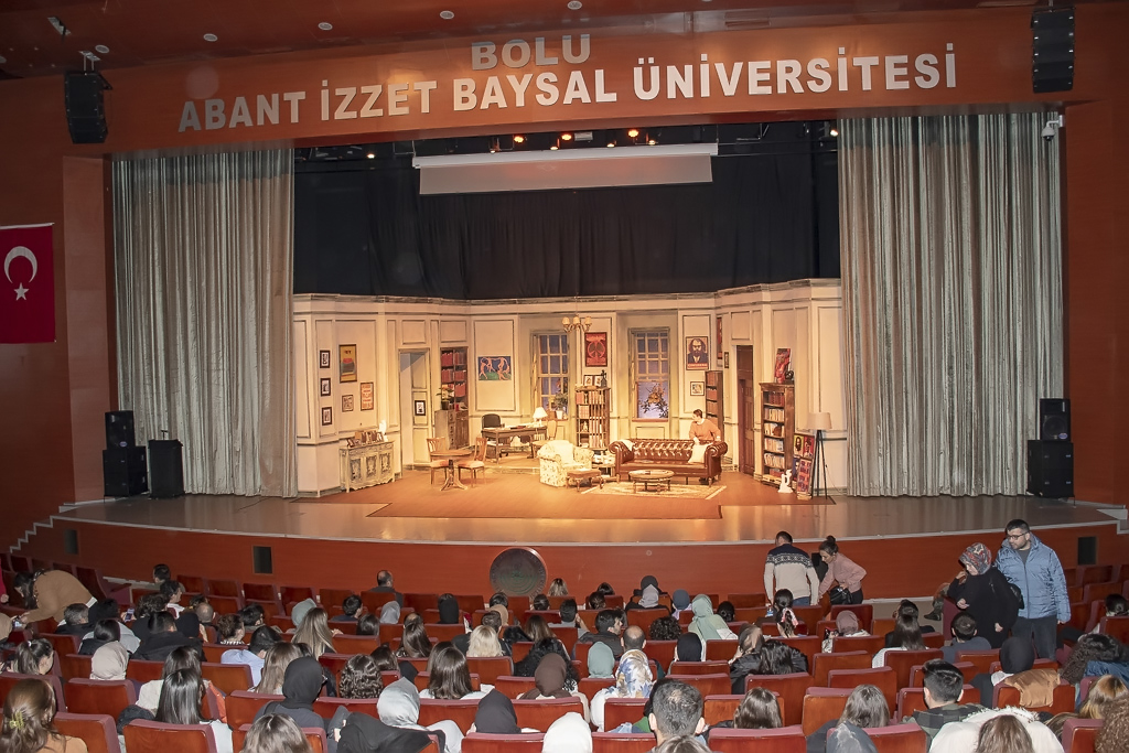 BAİBÜ Kongre Merkezi Bordo Salonda sahne alan oyun iki gün boyunca sanatseverlerin karşısına çıkacak. Bir yazarın başka usta bir yazar yardımıyla nasıl bir yol kat ettiğini ele alan tiyatro gösterisi izleyici tarafından büyük ilgi gördü.