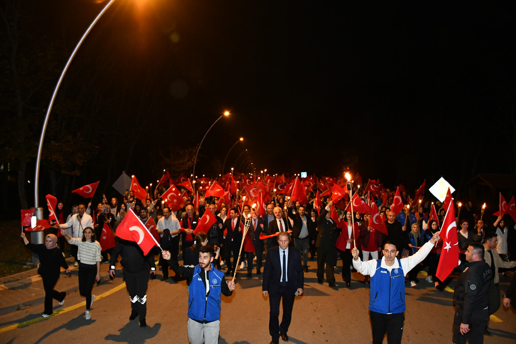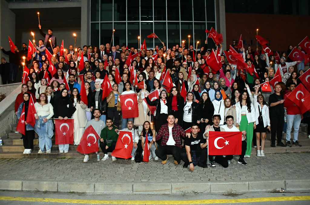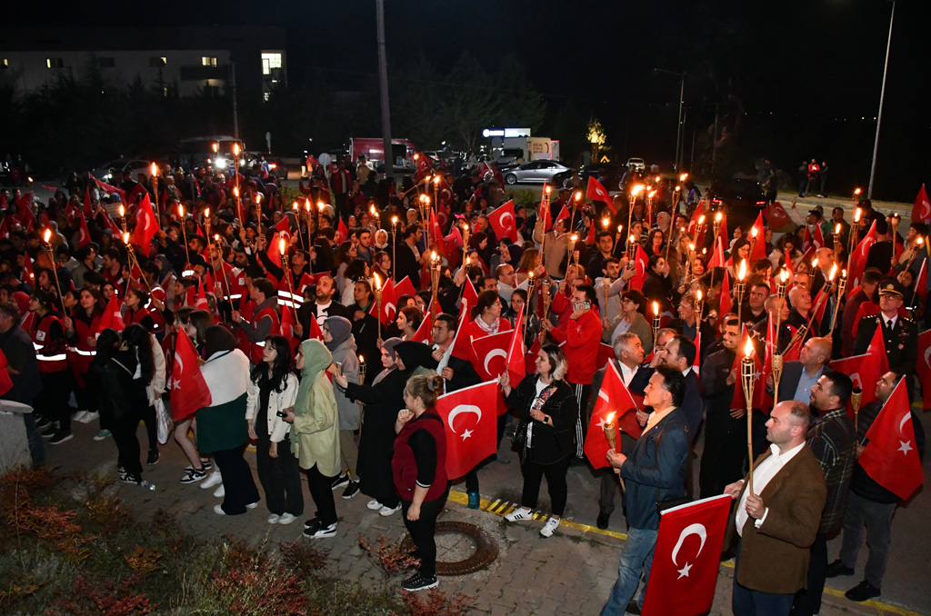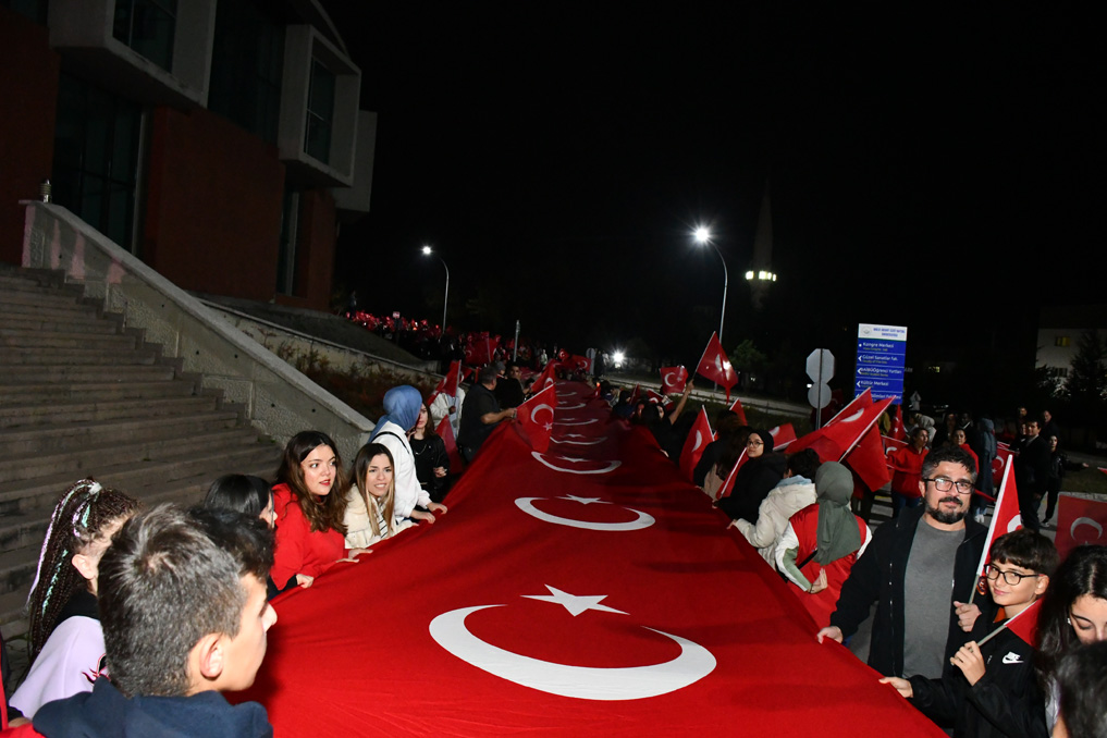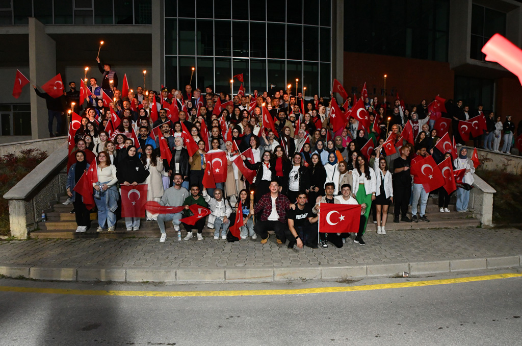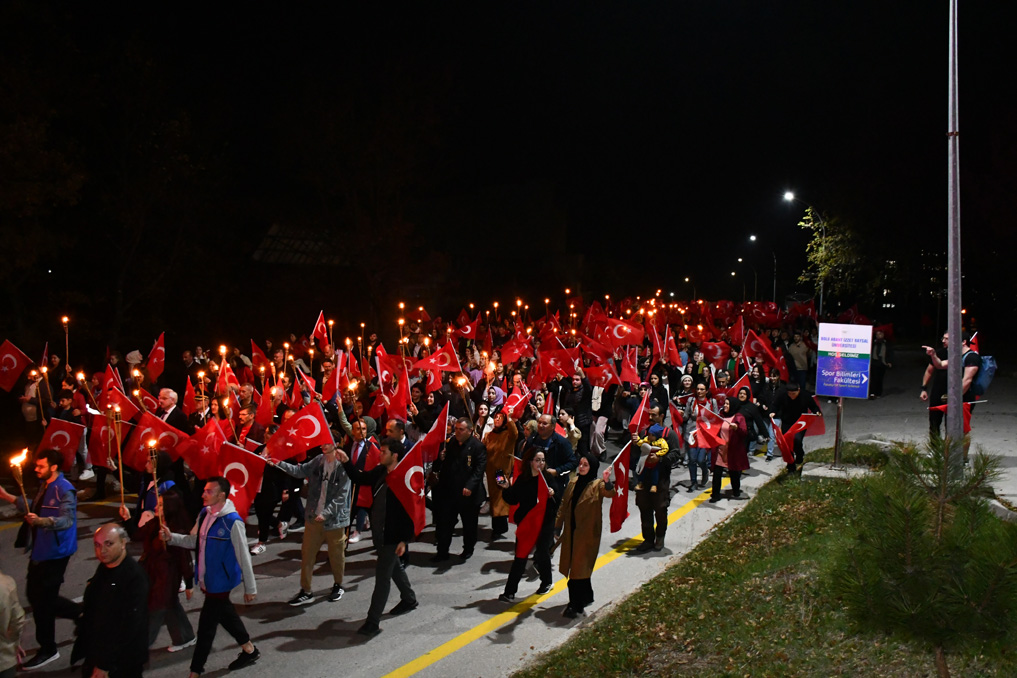 Cumhuriyetimizin 100. Yılı etkinlileri kapsamında üniversitemizde Valimizin himayelerinde düzenlenen fener alayı yürüyüşüne;