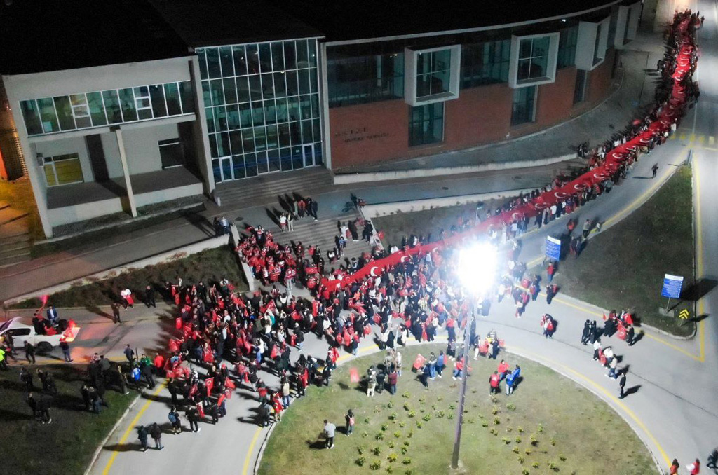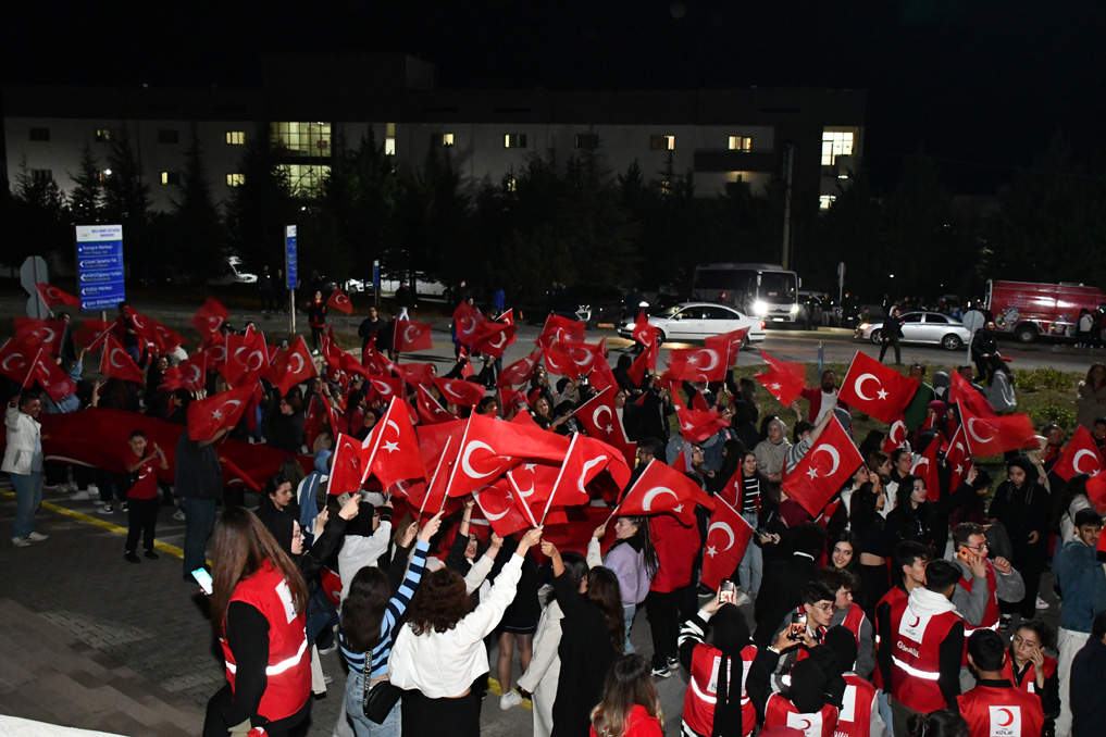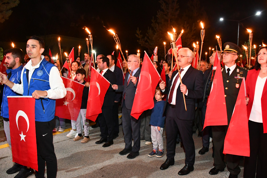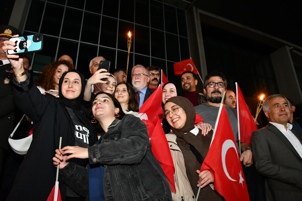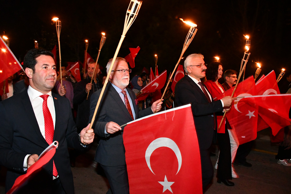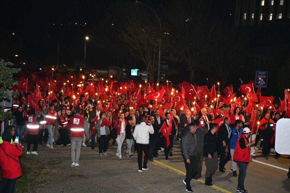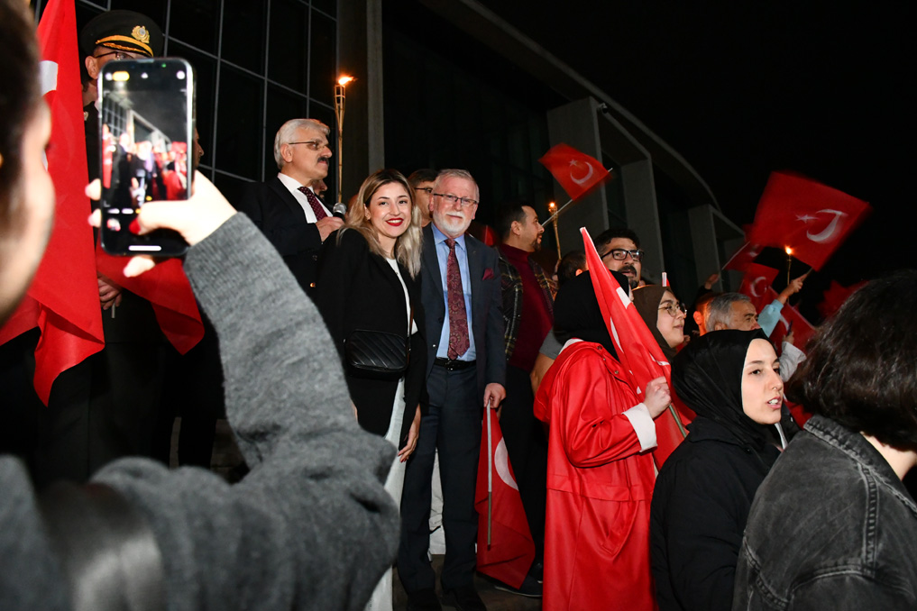 Cumhuriyetimizin 100. Yılı etkinlileri kapsamında üniversitemizde Valimizin himayelerinde düzenlenen fener alayı yürüyüşüne;
