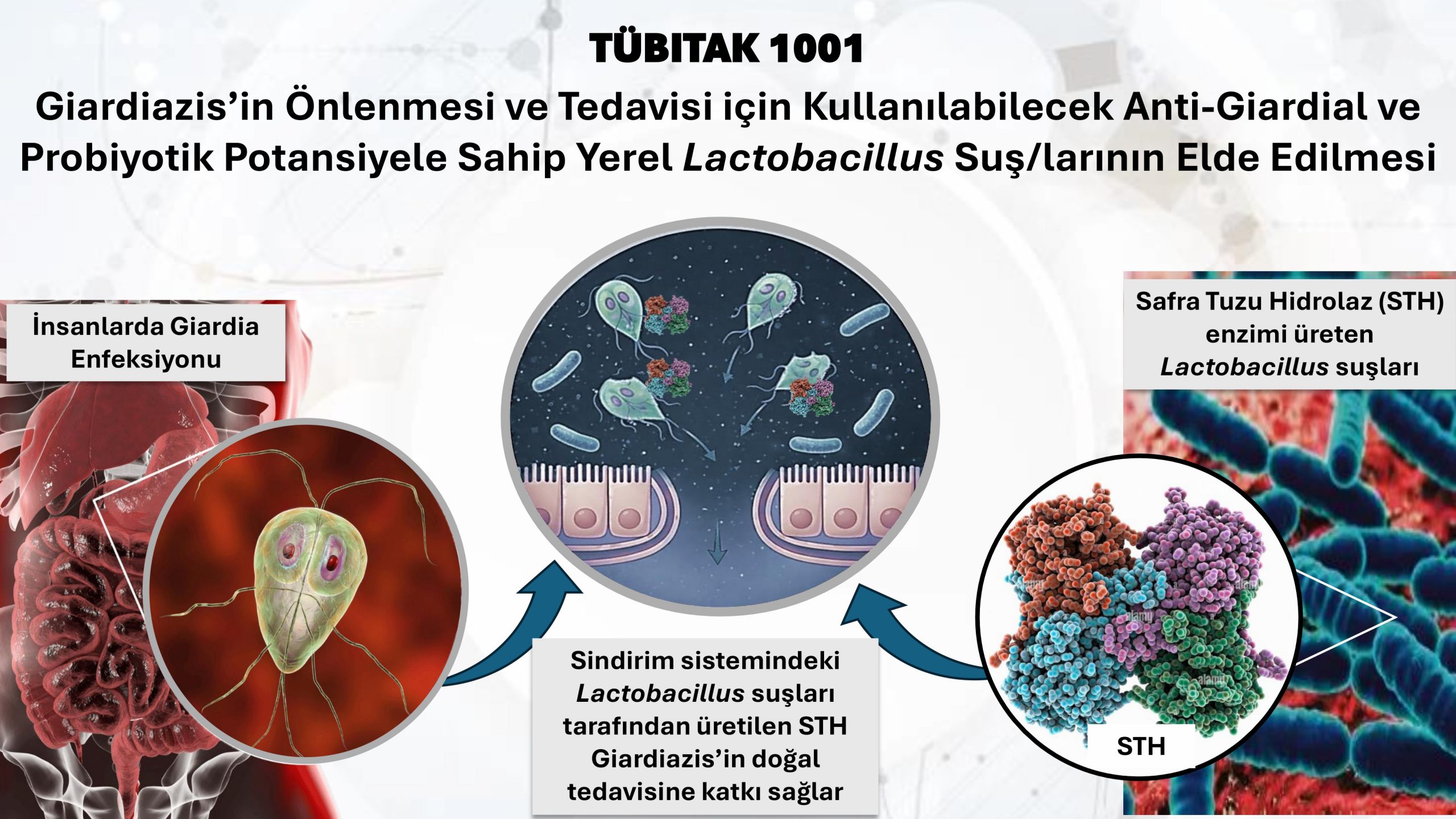 Laboratuvardaki 120 Suş Mercek Altında TÜBİTAK tarafından desteklenen proje ve 3 yıl sürecek olan bu kapsamlı araştırmada, üniversite stoklarında bulunan 120’den fazla yerel Lactobacillus suşu taranıyor. Projenin temel hipotezi, bu dost bakterilerin salgıladığı özel bir enzimin (STH), bağırsaktaki safra tuzlarını değiştirerek parazitlerin büyümesini engellemesi üzerine kurulu.