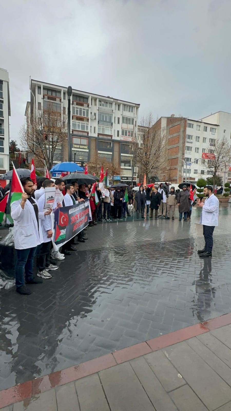 Yürüyüşün sonunda İsrail’in Gazze’deki zulmünü kınayan bir açıklama yapan Tıp Fakültesi öğrencileri, sağlık çalışanları ve vatandaşlar, Gazze’de hayatını kaybedenler için dua etti.