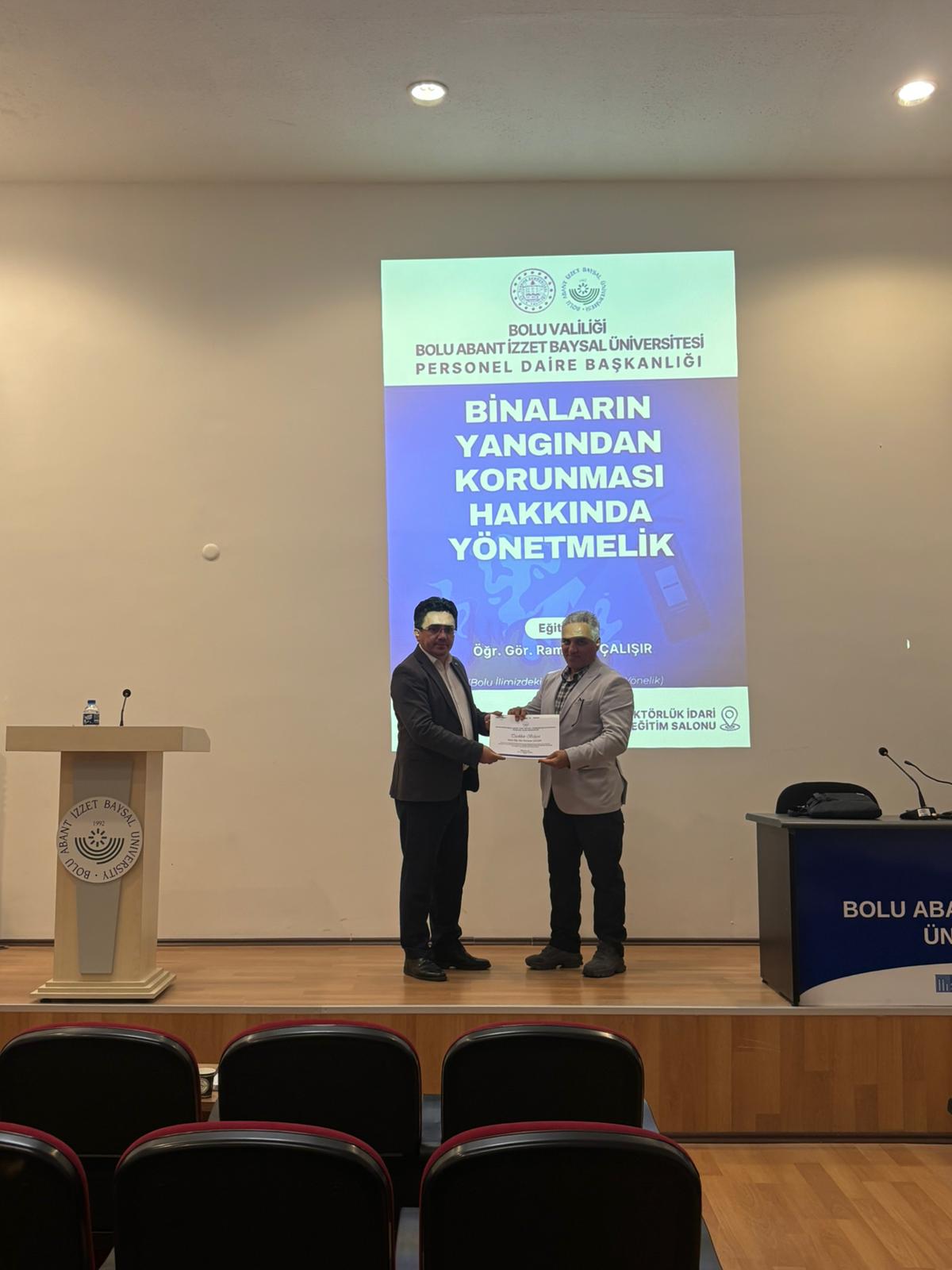 Üniversitemiz Personel Daire Başkanlığı Hizmet İçi Eğitim Şube Müdürlüğü tarafından, Bolu ilinde görev yapan mimarlara yönelik “Binaların Yangından Korunması Hakkında Yönetmelik” konulu hizmet içi eğitim düzenlendi. Eğitim, Rektörlük İdari Birimler Eğitim Salonunda gerçekleştirildi.