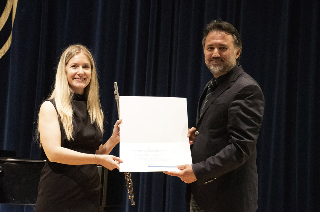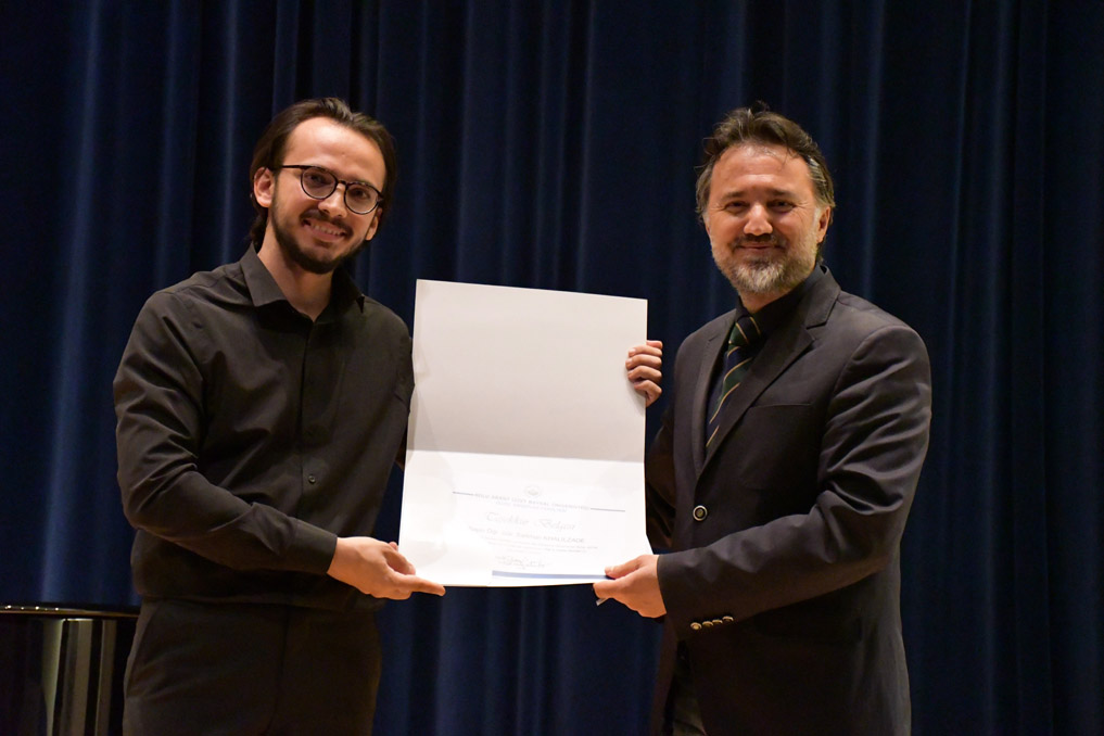 Flütte Doç. Gökçe Sarvan’a, piyanoda Öğr. Gör. Sarkhan Khalilzade’nin eşlik ettiği resital, sanatseverlerden tam not aldı. Resitalin sonunda sanatçılara, Güzel Sanatlar Fakültesi Dekanı Prof. Dr. Ahmet Serkan Ece tarafından teşekkür belgesi verildi.