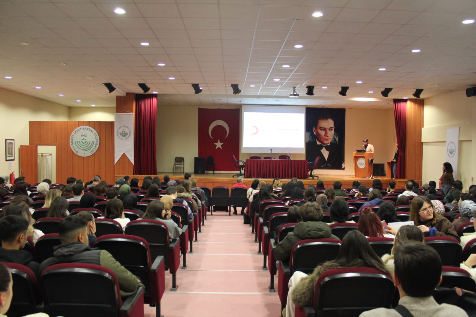 Ardından söz alan Kızılay Kan Bağışı Kazanım Uzmanı Erkan Ak, katılımcılara kan bağışı süreci, bağış öncesi ve sonrası dikkat edilmesi gereken hususlar ile gönüllü bağışçılığın etik ve toplumsal yönleri hakkında bilgilendirme yaptı.