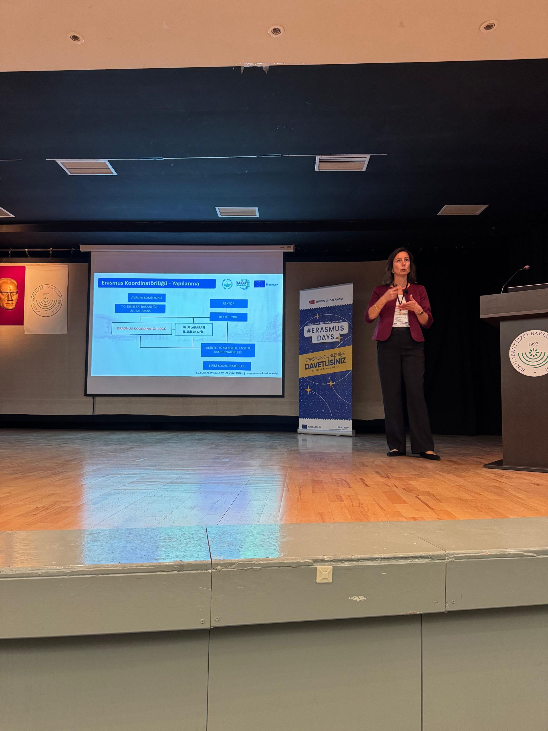 Etkinliklerin ikinci günü Kültür Merkezi Pembe Salon’da Erasmus Ofis Koordinatörü Öğr. Gör. Dr. Özlem Yelda Dilmen tarafından öğrenci öğrenim ve staj hareketlilikleri hakkında bilgilendirici bir sunum gerçekleştirildi.