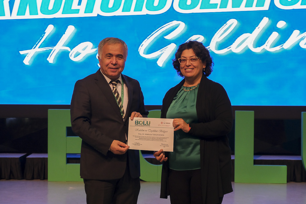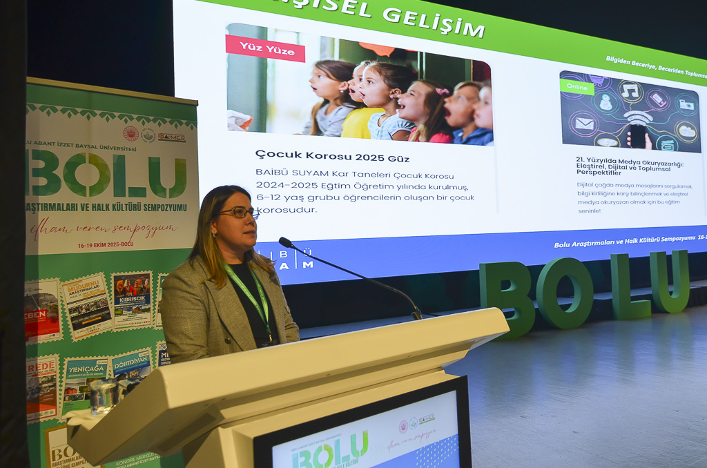 Doç. Dr. Hikmet Yağlı Mavil, “Bolu İçin Düşünen, Üreten, Paylaşan Bir Merkez: Toplumsal Katkı Hikayemiz” başlıklı sunumunu gerçekleştirdi. Merkezin aileyi güçlendirmek amacıyla eğitimler düzenlediğini, kamu kurumlarıyla iş birliği yaptığını belirtti. Çocuk Üniversitesi Projesi ile çocukların yeteneklerini keşfetmeye yardımcı olduklarını, Gençlik Üniversitesi Projesi ile gençlerin kariyer planlarına destek verdiklerini, Anneler Üniversitesi Projesiyle ise aile temalı eğitimlerle annelerin kişisel gelişimlerine katkı sunduklarını aktardı.