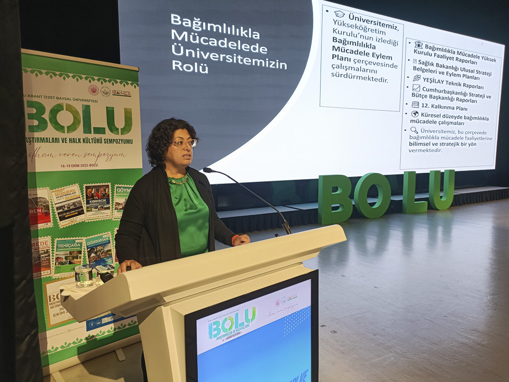 İlk olarak söz alan Doç. Dr. Makbule Tokur Kesgin, merkezin gerçekleştirdiği çalışmalar hakkında bilgi verdi. Bağımlılıkla mücadele ve farkındalığın artırılması amacıyla çeşitli eğitim programları, ilçe düzeyinde saha faaliyetleri, stant çalışmaları ve yürüyüşler düzenlediklerini ifade etti. Kamu kurumlarıyla iş birliği içinde bilgilendirici çalışmalar yapıldığını belirten Doç. Dr. Kesgin, “Dumansız Üniversite Uygulaması Yönergesi”nin üniversiteye kazandırıldığını vurguladı.