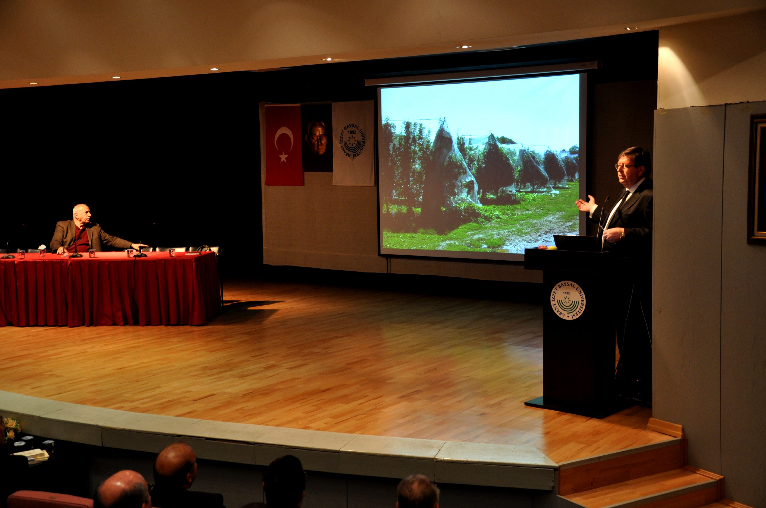 Abant İzzet Baysal Üniversitesi (AİBÜ) Ziraat ve Doğa Bilimleri Fakültesi tarafından İzzet Baysal Kültür Merkezi’nde ‘Bolu Meyveciliğini Geliştirme’ konulu panel düzenlendi. Panelde, çeşitli üniversitelerin alanında uzman akademisyenleri konuyla ilgili önemli bilgiler verdiler. Paneli; Gıda Tarım ve Hayvancılık Bakanlığı, Bolu İl Gıda Tarım ve Hayvancılık Müdürlüğü ve Bolu Ziraat Odası temsilcileri ile öğretim üyeleri ve öğrenciler izledi.