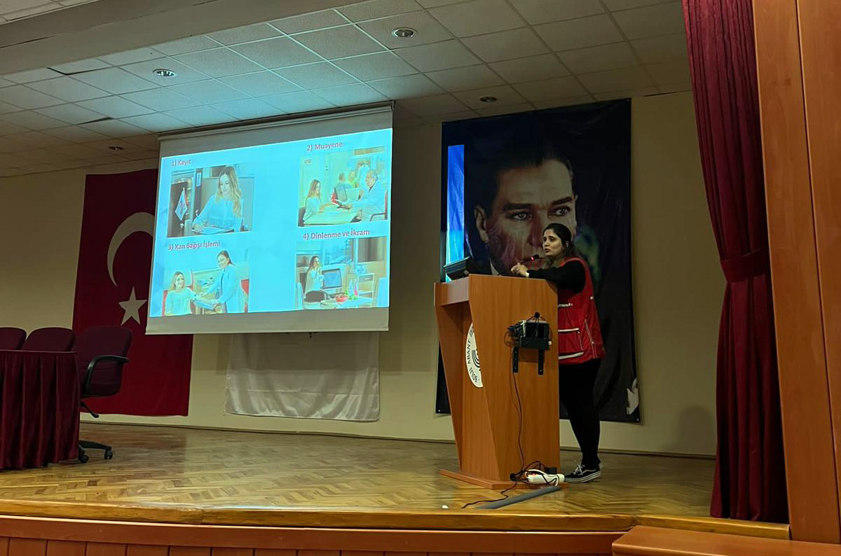 Açılış konuşmalarının ardından Kızılay Kan Bağışı Kazanım Uzmanı Nur Okçu, kan ve kök hücre bağışı konusunda öğrencileri bilgilendirdi ve tüm vatandaşlarımızı kan bağışında bulunmaya davet etti. Öğrencilerimiz ve personelimiz, 2 gün boyunca, okulun bahçesinde bulunan Kızılay’ın kan bağışı aracına giderek, kan bağışında bulundu.