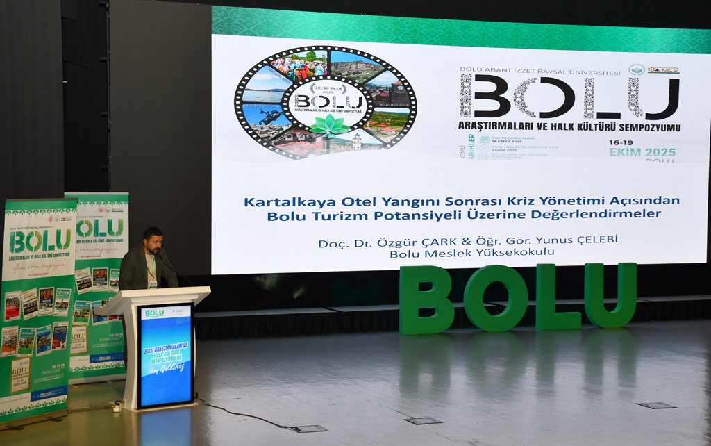 Son olarak Doç. Dr. Özgür Çark ve Öğr. Gör. Yunus Çelebi, “Kartalkaya Otel Yangını Sonrası Kriz Yönetimi Açısından Bolu Turizm Potansiyeli Üzerine Değerlendirmeler” başlıklı sunumlarında, kriz yönetimi süreçlerinin turizm algısına ve sürdürülebilirliğe etkilerini dinleyicilerle paylaştılar.