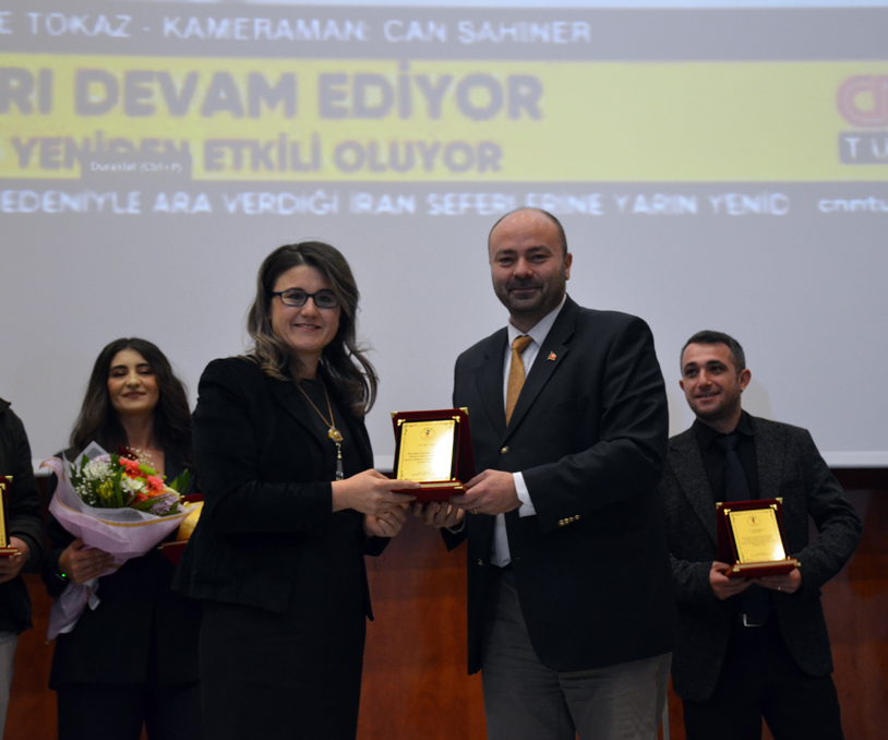 İletişim Fakültesi Dekanı Prof. Dr. Emre Tandırlı’nın yanı sıra akademik-idari personel ve öğrencilerin katıldığı söyleşide genç televizyoncuyu meslektaşları da yalnız bırakmadı. Program, soru-cevap bölümünün ardından Merve Tokaz ile ilimizde yerel ve ulusal medyada görev yapan basın mensuplarına teşekkür plaketi takdim edilmesiyle sona erdi.