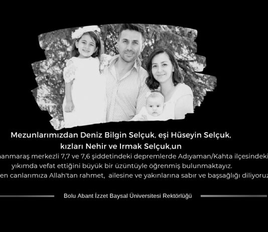Merhume öğrencimize Allah'tan rahmet, ailesine, yakınlarına ve BAİBÜ ailemize...